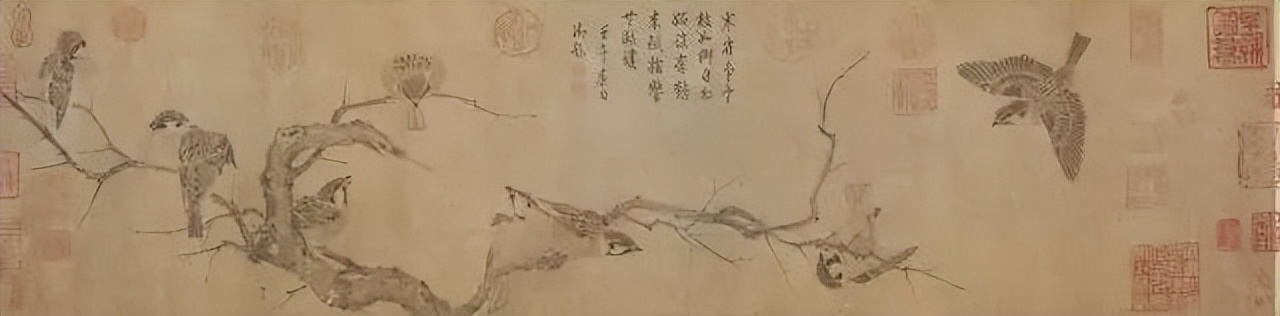 北宋的到来,如同春风拂面,吹散了五代的纷争,也吹开了新的艺术之花。崔白,这位北宋画坛的奇才,以其独特的清淡疏秀之风,为花鸟画增添了新的活力。他的《寒雀图卷》,寒雀栖息枝头,瑟瑟寒风仿佛透过画面扑面而来,那份孤寂与萧瑟,却别有一番滋味在心头。而他的《双喜图》,则充满了祥和喜庆的氛围,两只喜鹊栖于梅枝之上,象征着吉祥如意,画面生动传神,令人心生欢喜。他那灵动传神的笔触,将自然界的细微之处,展现得淋漓尽致。