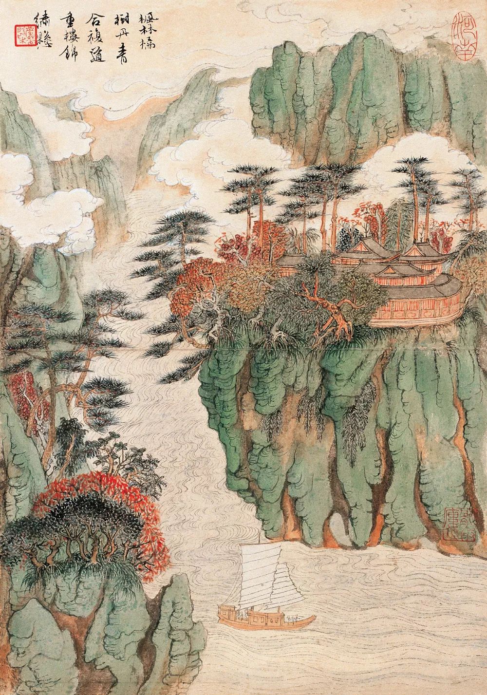 他的山水,常常让人想起宋词的清丽婉约,又兼具元人的雄浑洒脱。这并非偶然,他深谙诗词之美,将对诗词的感悟融进画作之中。那些笔墨的运用,挥洒自如,却又恰到好处,仿佛是诗词的音律在画布上跳跃,每一个线条,每一抹色彩,都饱含着深沉的情感。