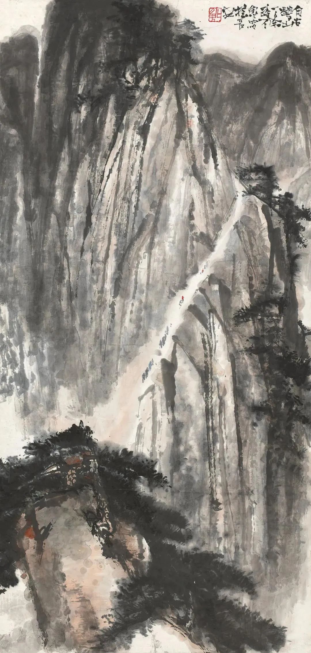 凝视着《转战陕北》,仿佛能听到马蹄声声,看到战士们坚毅的身影在风沙中穿行。那粗犷的笔触,如同高原的沟壑,纵横交错,却又蕴藏着无尽的韧性。 《黄河两岸渡春秋》则以大气磅礴之势,展现了黄河的奔腾不息,以及在这条母亲河孕育出的生生不息的生命力。 而《自古华山一条路》则以其独特的视角,将华山之险峻,以及攀登者的心路历程,都浓缩在那一笔一划之中。