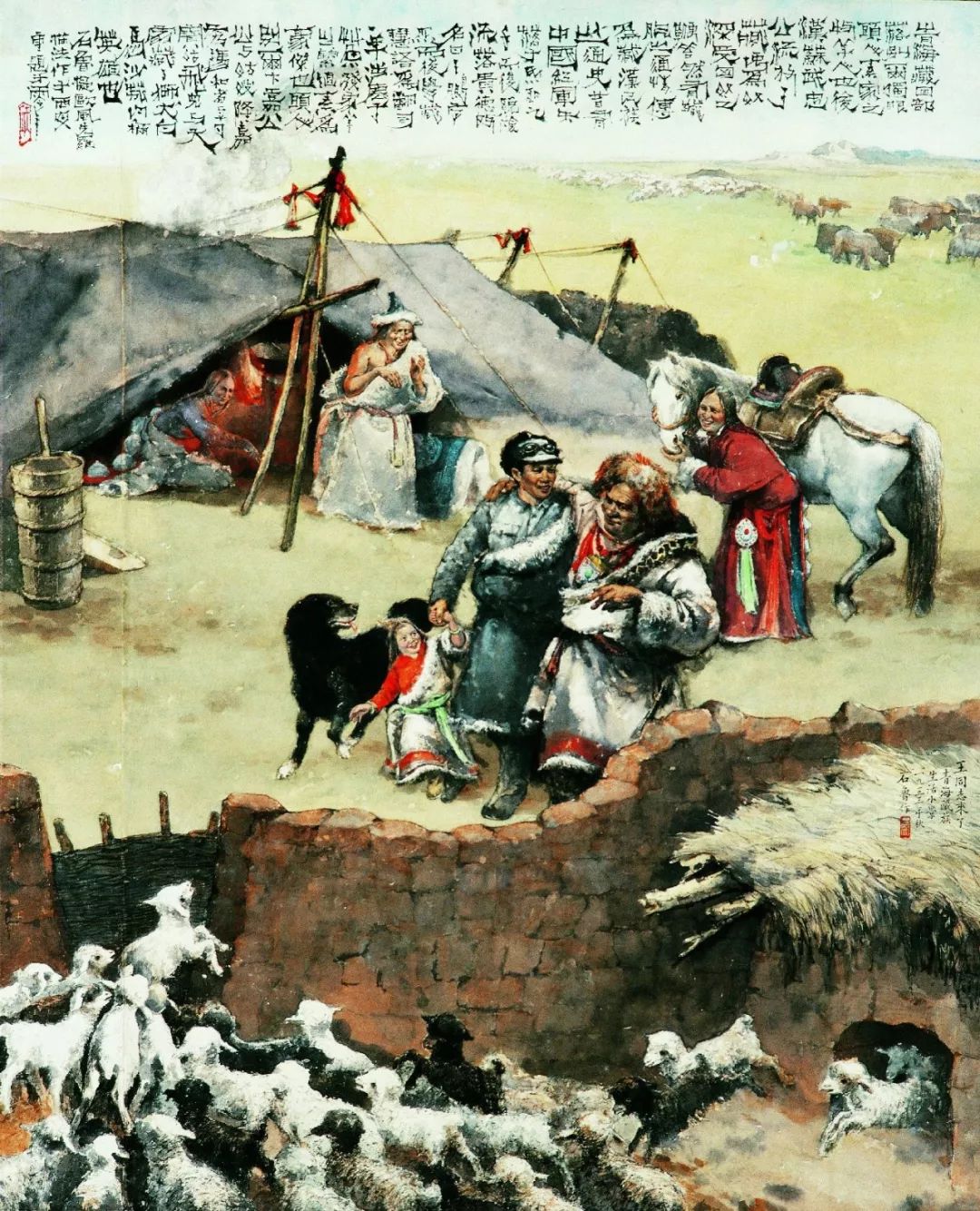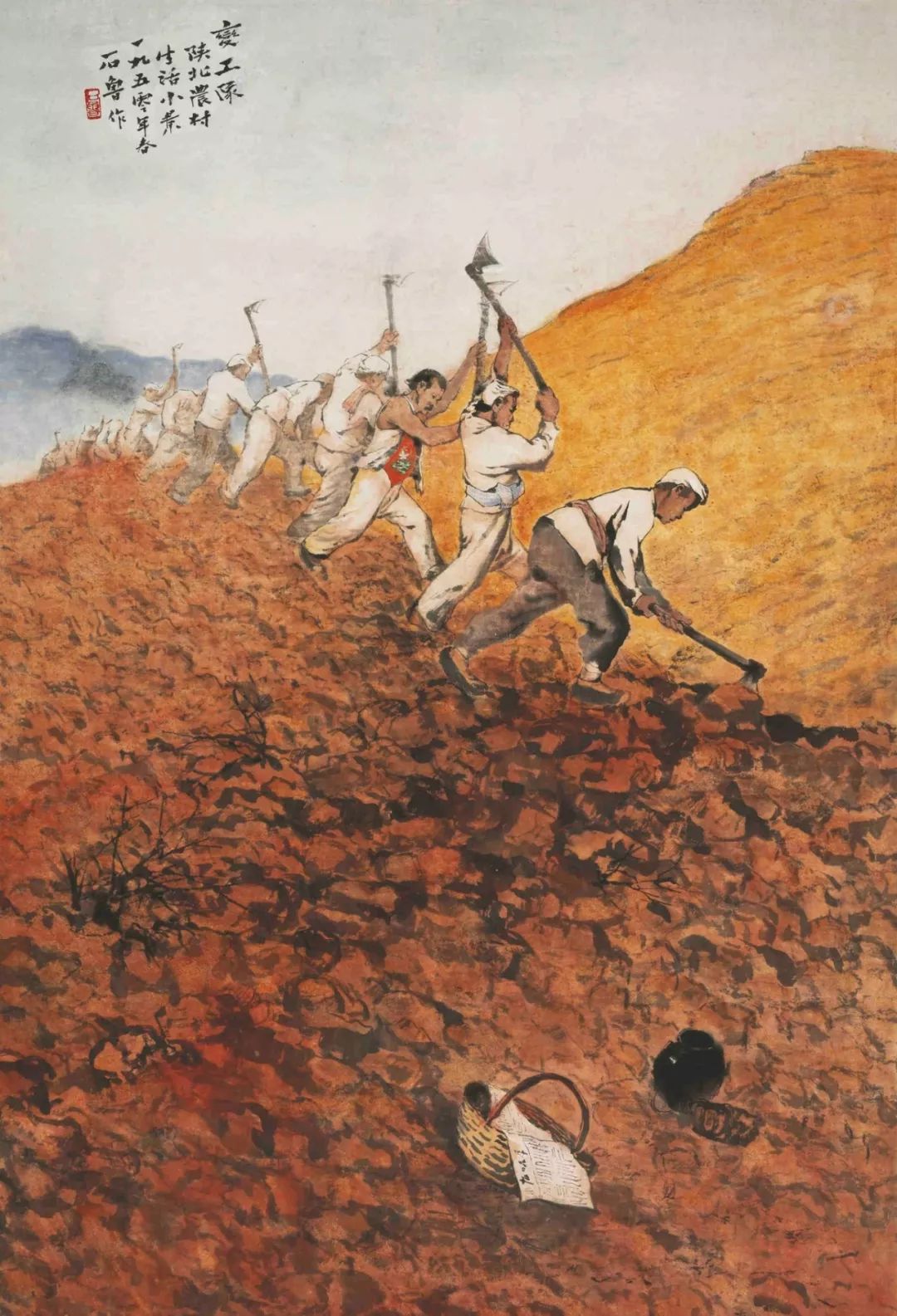 石鲁的画作,不只是对景物的描摹,更是对人性的探寻。《变工队——陕北农村生活小景》中,劳作的人们,他们的身影在阳光下显得格外坚定;《王同志来了》则充满了时代的气息,洋溢着乐观与希望;《开天辟地》和《移山图》更像是一曲气势恢宏的史诗,展现了中华民族的顽强意志和不屈精神。