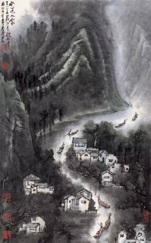 《桥亭听瀑》、《人在万点梅花中》、《山村飞瀑图》、《山居图》、《蜀山春雨》、《蜀山春雨图》、《巫山云图》、《消夏图》、《杏花春雨江南》……这些画作的名字,如同诗歌的标题,简洁而富有韵味。每一幅作品,都如同一个故事,一个意境,等待着你去细细品味,去慢慢感受。李可染先生用他精湛的技法和深厚的功力,为我们展现了一个充满诗情画意,生机勃勃的世界,也为中国山水画的发展开辟了一条崭新的道路。他的作品,不仅是艺术的杰作,更是中华文化的瑰宝,值得我们永远珍藏和传承。