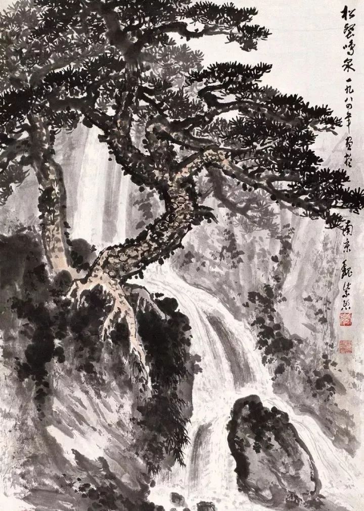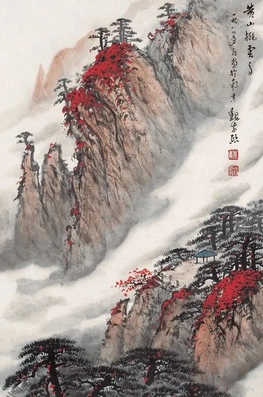 到了晚年,魏紫熙的山水画更是臻于化境。他继承了“水晕墨章”和“画不点苔,山无生气”的美学观念,却又在其中注入了自己的创造。他发展了点苔法,创造出重彩点苔的独特表达方式,让山石更加灵动,让画面更加生机勃勃。这是一种返璞归真后的升华,是艺术大师对传统与创新的完美融合。