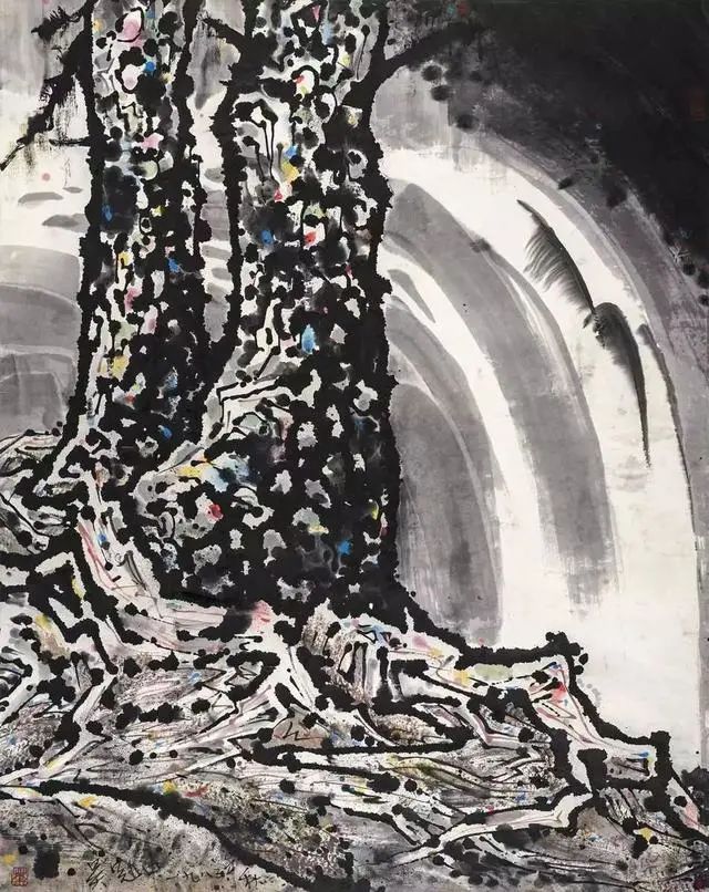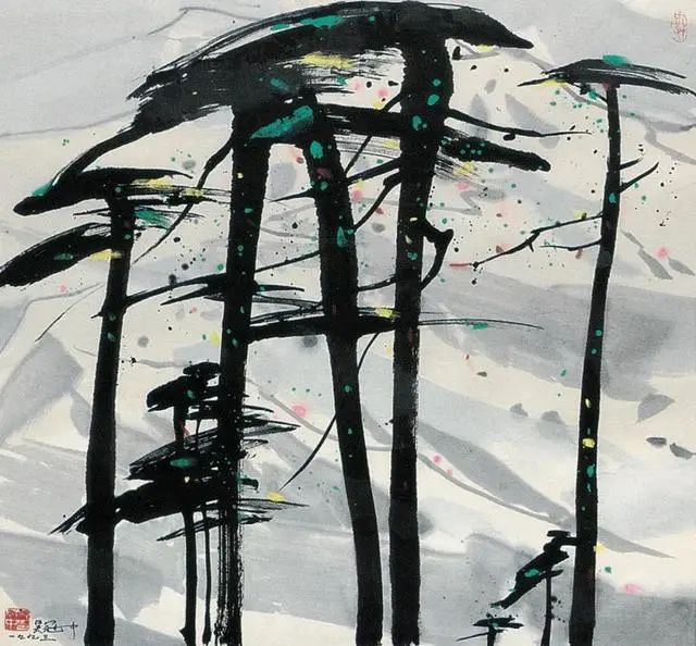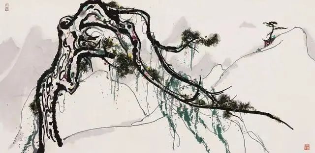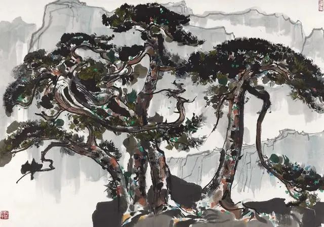 他笔下的水墨画,更是将中国传统绘画的精髓发挥得淋漓尽致。《杭州虎跑》中,山间清泉涓涓流淌,浓淡相间的墨色,营造出一种清幽脱俗的意境;《苍松》则以寥寥几笔,便勾勒出古松的苍劲挺拔,那遒劲的枝干,仿佛诉说着岁月的沧桑与坚韧。《松泉图》中,松树与泉水相映成趣,动静结合,充满了生命活力,这是一种只有在东方水墨画中才能感受到的韵味。