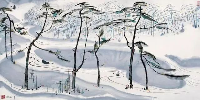 翻开吴冠中先生的作品集,仿佛步入了一个充满诗情画意的世界。他的油画,并不拘泥于西方的写实传统,而是大胆地融入了东方元素,如《松与雪山》,挺拔的松树与巍峨的雪山交相辉映,笔触粗犷却又不失细腻,冷峻的色调中透露出勃勃生机,那是属于东方山水的苍茫与静穆。而《卧柳》则以柔和的线条勾勒出柳枝的婀娜多姿,仿佛微风轻拂,带来丝丝凉意,画面宁静而富有诗意,令人心旷神怡。