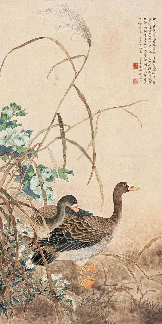 尤其令人印象深刻的是他笔下那些成双成对的鸟儿:斑鸠的温婉,鸿雁的忠贞,仙鹤的优雅,鸳鸯的恩爱,白鹭的清丽,鹌鹑的灵巧,鸽子的平和,燕子的轻快…… 这些生灵在他的画笔下,不再只是简单的禽鸟形象,而被赋予了更深层次的象征意义。它们相互依偎,彼此守护,构成了一幅幅充满爱意和希望的画面。 这些画面不仅仅是视觉上的享受,更触动了人们内心深处对于爱情、亲情、友情最美好的向往。