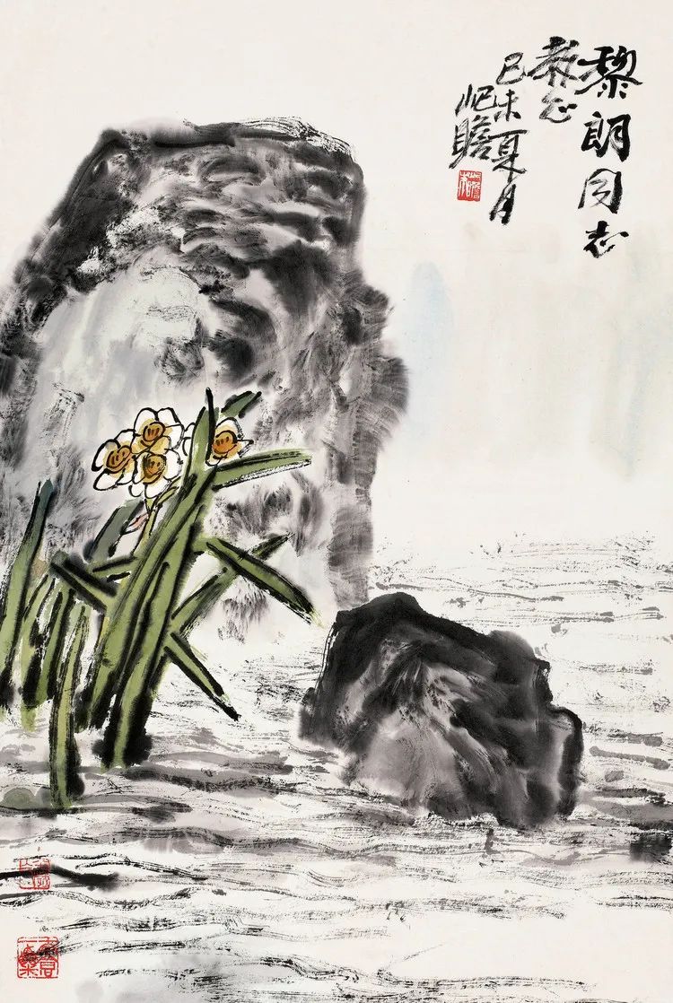 朱屺瞻先生的画作,常常给人一种苍老雄健之感,却又透露出一种天真烂漫的童趣。他追求画面的简洁,寥寥数笔,便能勾勒出令人心动的意境。这是一种返璞归真的境界,也是他对艺术极致追求的体现。