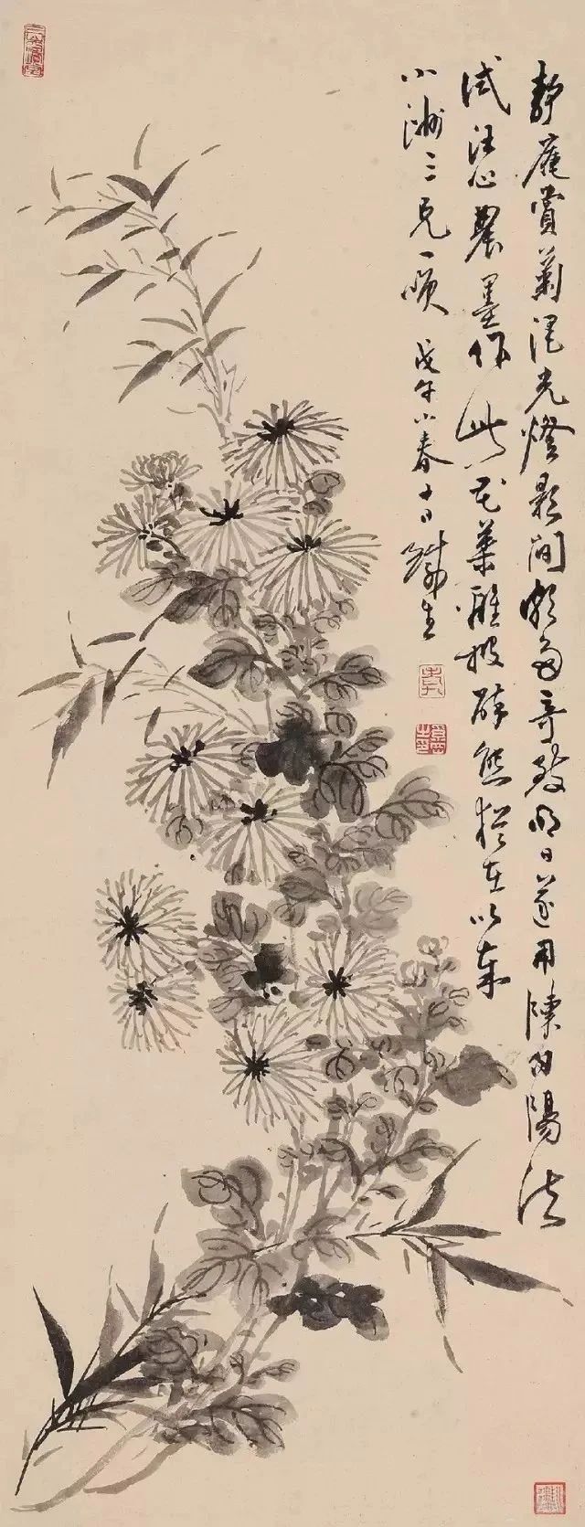 再看晚清乃至近现代的大家之作,溥佐的《双清图》依然保持着文人画的清雅,却又多了几分时代的气息。吴昌硕的《双清》,以其独特的篆刻风格,将画面赋予了更强的视觉冲击力,浓墨重彩,奔放恣肆。张大千的两幅《竹菊双清图》,一如其人,兼具了文人画的清雅和泼墨写意的豪放,展现出他深厚的绘画功底和对艺术的独特理解。陈半丁的《双清图》则更显秀丽,笔墨细腻,色彩柔和,如同一位温婉的女子,静静地诉说着岁月的静好。