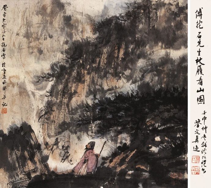 他的一生,如同他笔下的山河般跌宕起伏,却又始终保持着一种高洁的格调。早年临摹古人,打下坚实的传统功底;留学日本,汲取西方艺术的营养;而后在巴蜀金刚坡的八年,更是他艺术生涯的巅峰时期。在那漫长的时光里,他与山川为伍,与云雾为伴,将大自然的鬼斧神工融入到自己的创作中,最终形成了独具特色的“抱石皴”。 这皴法并非简单的笔墨技巧,而是他生命体验的凝结,是人与自然和谐共生的写照。