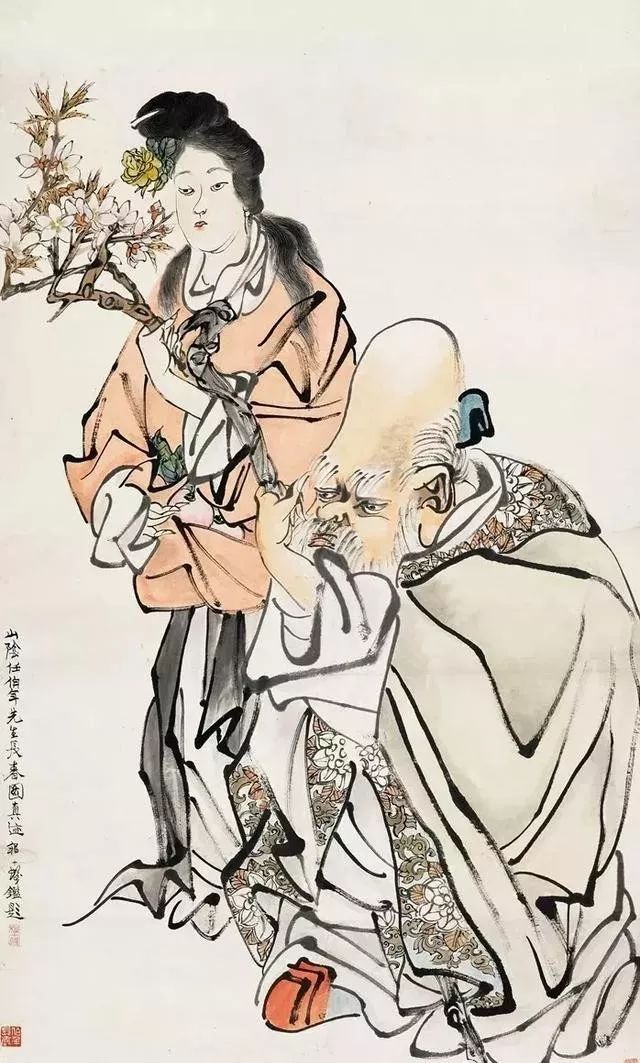 任伯年还善于运用西方绘画的透视原理,使画面更有层次感和空间感。他的人物,不再是平面化的存在,而是具有立体感和阴影变化的真实存在。这种中西合璧的技法,使得他的作品既保留了中国画的韵味,又增添了西画的写实性,堪称完美结合。