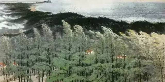 《南岳写生》中,我们仿佛能感受到画家面对自然时的激动与敬畏。他笔下的南岳,雄浑壮阔,却又充满了灵动之气。每一笔都饱含着对自然的理解和热爱,这是一种超越技巧的艺术境界。 同样的,在《碧浪涌南山》中,那奔腾的波涛和挺拔的山峰,在画家笔下形成了一种和谐的统一,展现了自然界的勃勃生机。
