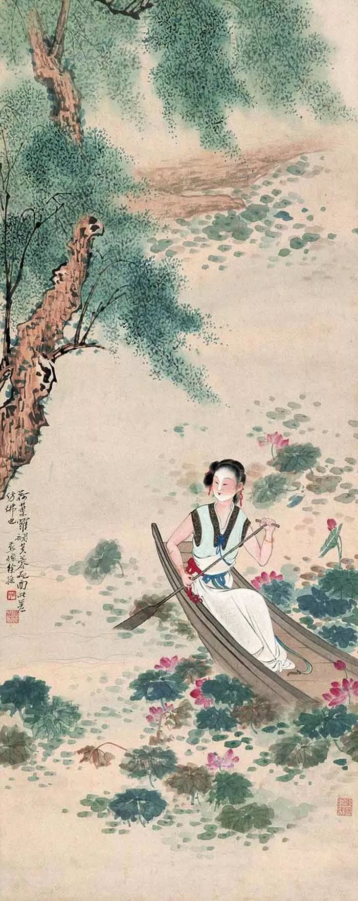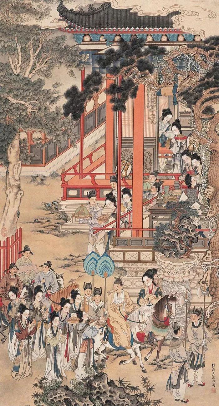 徐燕孙的绘画风格,如同他的人生一样,丰富而多变。白描的简洁利落,淡彩的清雅脱俗,重彩的浓墨重彩,吴装的古朴典雅……他游刃有余地驾驭着各种技法,将它们融汇贯通,形成自己独特的风格。他的笔触,既有健笔的洒脱豪迈,又有精严的工整细致;他的色彩,既有旖旎的温柔婉约,又有靓丽的明快奔放;他的画面,既有繁复的精巧细致,又有简洁的空灵飘逸。他将古意与今情巧妙地融合,将雅趣与俗赏完美地统一,让观者在欣赏之余,更能感受到一种深沉的历史感和浓郁的生活气息。