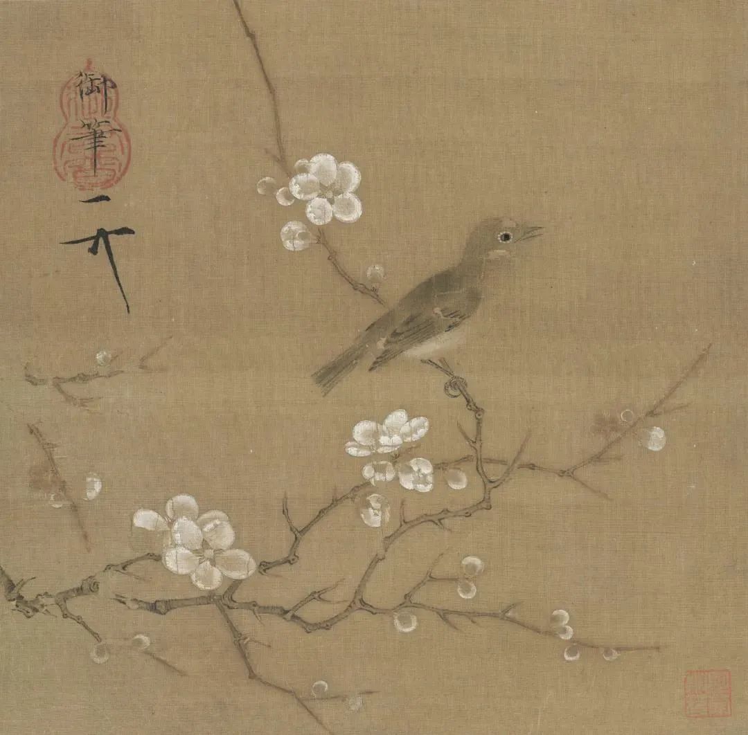 《梅花绣眼图》则是一曲冬日清雅的小调。傲雪的梅花,点点缀于枝头,一只小小的绣眼鸟,宛如一颗跳动的音符,点亮了整个画面。它那轻盈的身姿,精致的羽毛,都仿佛在诉说着冬日的坚韧与希望。宋徽宗对细节的刻画达到了极致,每一根枝条,每一片花瓣,都栩栩如生,仿佛触手可及。这不仅仅是绘画,更是一种对生命极致的尊重与赞美。