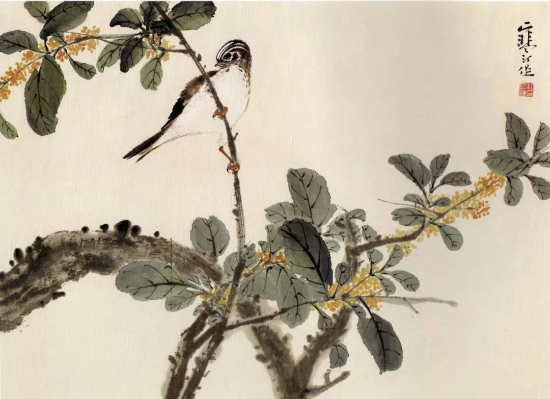 江寒汀先生不拘泥于传统,他注重写生,又博采众长,将没骨小写意和工笔勾染融为一体,赋予了作品独特的风格。稻鸡在芦草丛中觅食,乌春停歇在碧桃枝头,黄眉金肚子与百日红相映成趣,十姊妹环绕着海棠花……他笔下的植物,不再是简单的背景,而是与鸟类和谐共生的意境之源,互相辉映,相得益彰。