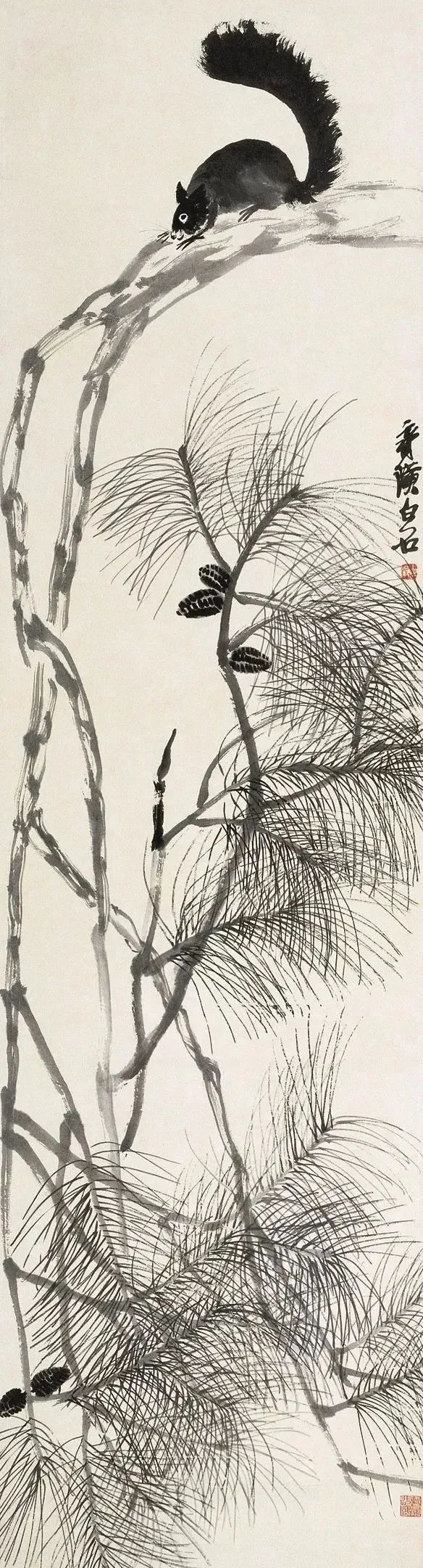 徐悲鸿纪念馆珍藏着许多齐白石的佳作,每一幅都如同一段动人的故事。 《松树松鼠》,松针的挺拔与松鼠的灵动,形成了一种和谐的对比;《残荷》,寥寥几笔,便勾勒出残荷的萧瑟之美,一种秋天的况味扑面而来;《白山茶》,洁白的花瓣,在墨色的衬托下,更显高贵典雅…… 这些画作,并非刻意追求完美,而是一种返璞归真的境界,是画家对自然最真挚的表达。