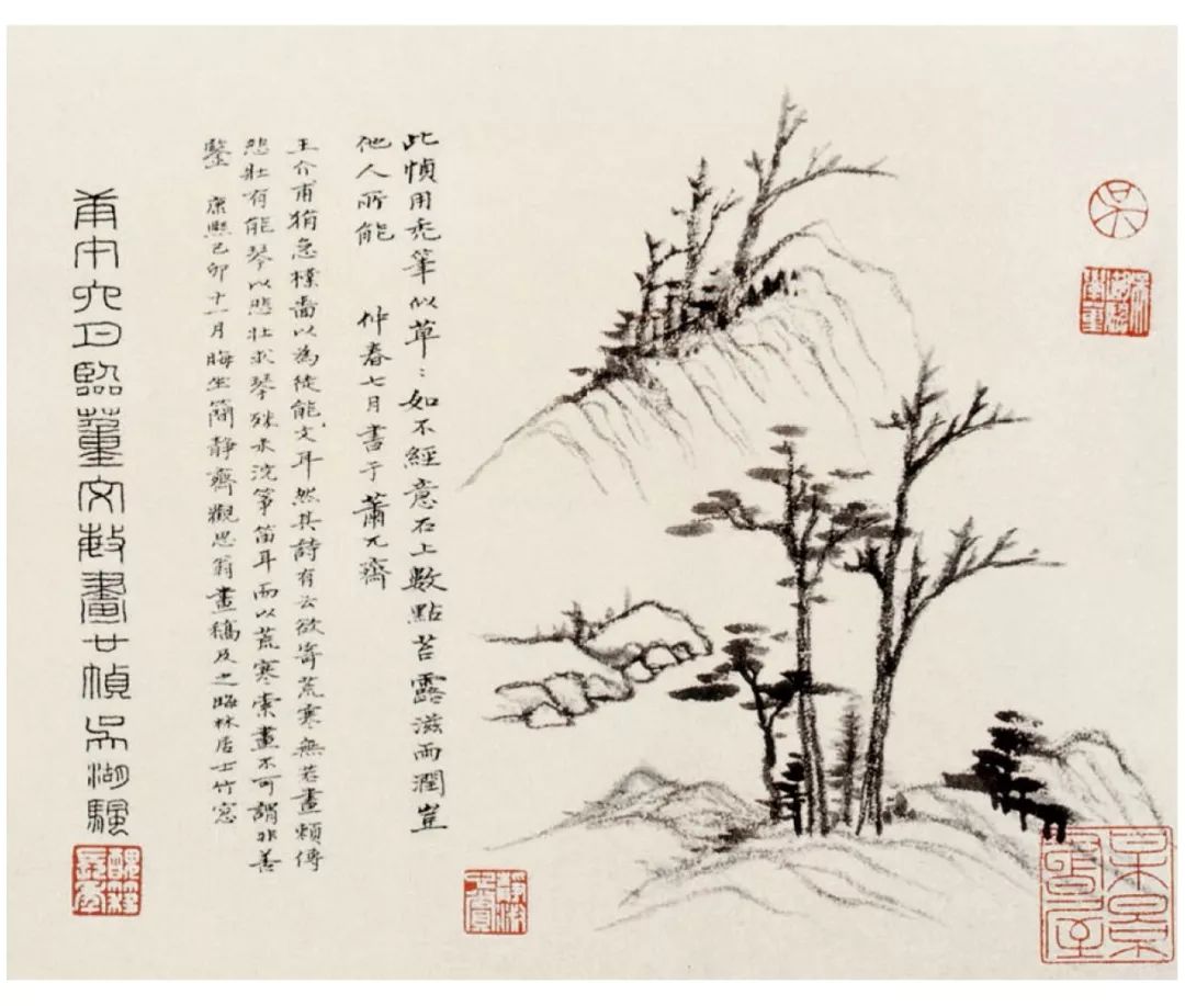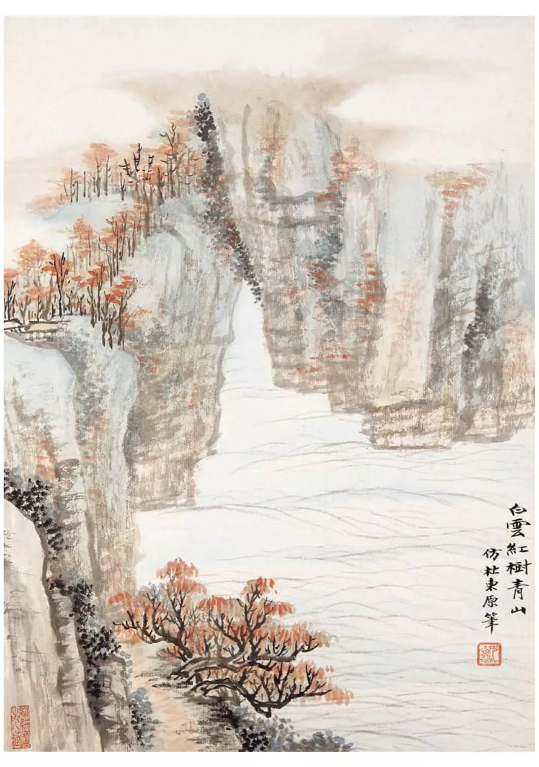人们常说“南吴北溥”,吴湖帆的名字,便如同这秋日午后温暖的阳光,洒落在每一幅作品之上。他的山水画,并非一味地摹古,而是将“四王”的深厚功底与海派大胆鲜丽的设色巧妙融合,创造出一种介乎于青绿与水墨之间的新境界。