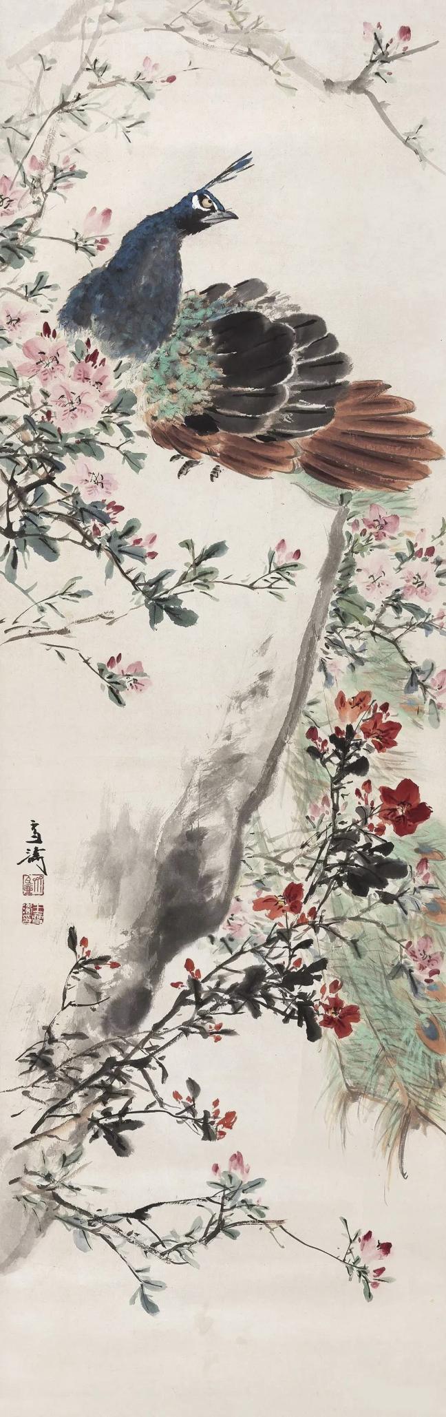 王雪涛的艺术之路,是融汇中西、贯通古今的旅程。他早年受过西画的专业训练,对色彩的运用有着独到的见解。然而,他并没有沉迷于西方的写实风格,而是将西画的光影、色彩融入到传统的中国画技法中,创造出一种独具特色的艺术语言。他的用色,大胆而富有层次,却又和谐统一,仿佛是大自然本身的色彩被巧妙地捕捉,再现于画纸之上。