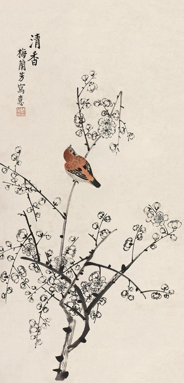 民国初年,北京城内,文墨飘香,画坛盛景。那时,一位梨园巨匠,正以他独特的艺术魅力,惊艳着世人,他就是梅兰芳。这位“梅派”的创始人,不仅在戏台上挥洒着令人叹为观止的才情,更在水墨丹青的世界里,留下了一抹清丽雅致的印记。他的花鸟画,并非简单的摹写自然,而是将戏曲舞台上那份灵动与洒脱,巧妙地融入笔端,形成了他独特的艺术风格。