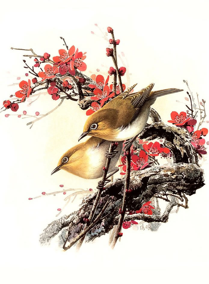 陆抑非花鸟画作品欣赏,画作意境高远,形神兼备