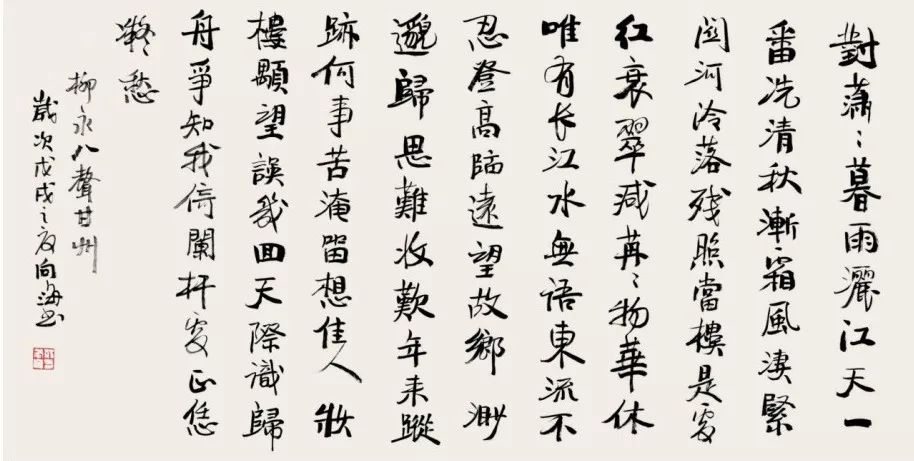 柳永的《蝶恋花》和《八声甘州》,则展现出另一种缠绵悱恻的情感。流畅的线条,婉转的笔锋,将词人的相思与愁绪表达得淋漓尽致。“杨柳岸,晓风残月”,这凄美的景象,在荆先生的笔下,更添几分诗意与浪漫。