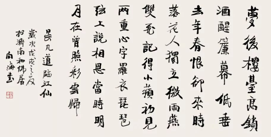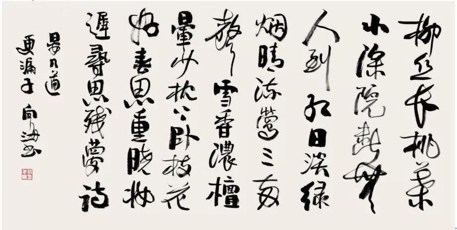 荆向海先生的书法,并非简单的文字书写,而是一种艺术的创造。他将宋词的意境与书法的美感完美地融合在一起,创造出一种独特的艺术风格。他的书法作品,不仅具有极高的艺术价值,更具有深厚的文化内涵。观赏他的作品,不仅是一种视觉的享受,更是一次心灵的洗礼。
