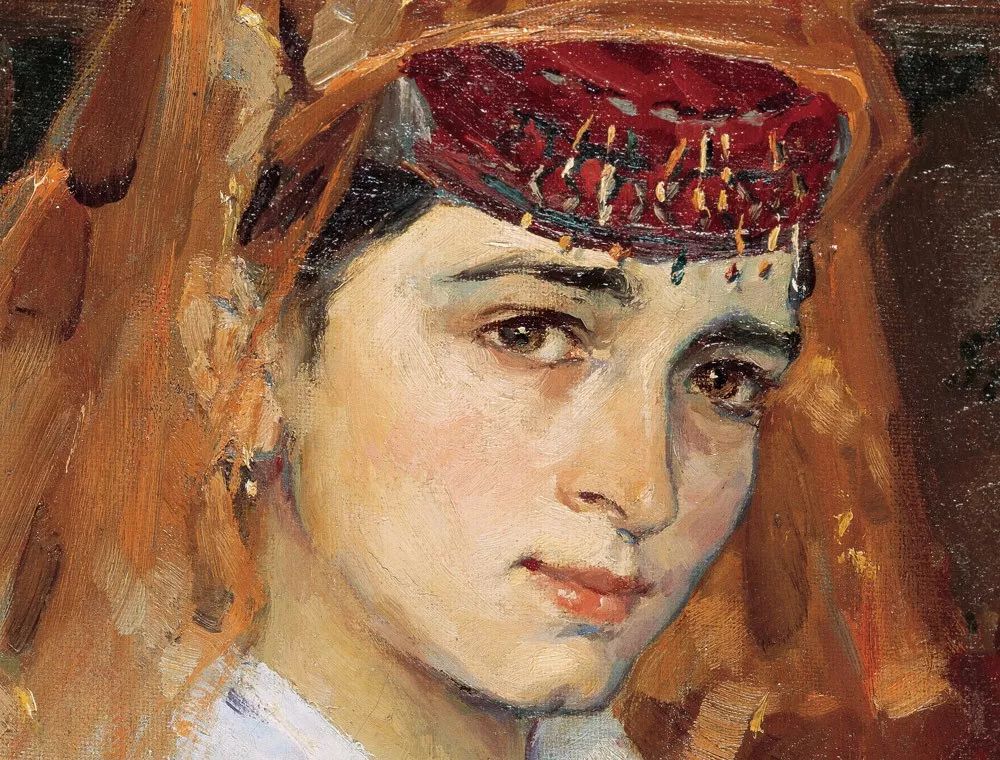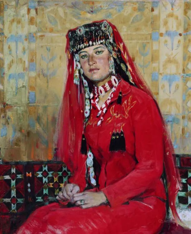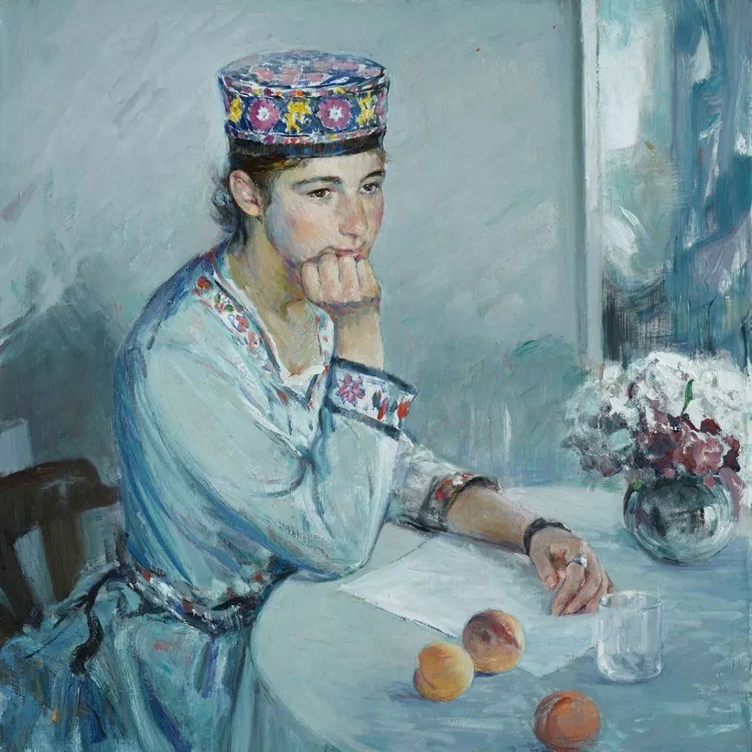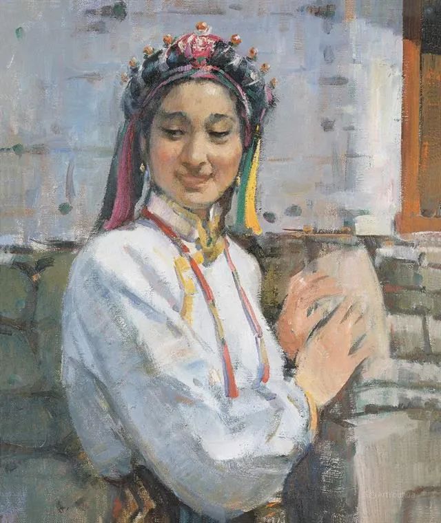 《塔吉克姑娘》,1980年的作品,至今仍散发着令人心醉的魅力。画面上的姑娘,眼神清澈如山间的溪水,脸庞红润如高原的朝霞。她头戴传统的塔吉克族头饰,身上的服饰色彩鲜艳,充满了异域风情。整幅画作,仿佛一首无声的歌谣,吟唱着塔吉克族人民的勤劳与智慧,美丽与坚韧。