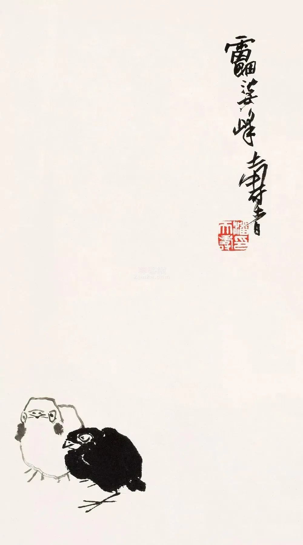 《抱雏图》中,母鸡护着小鸡,充满了母爱的温情,让人感受到生命的脆弱与伟大。