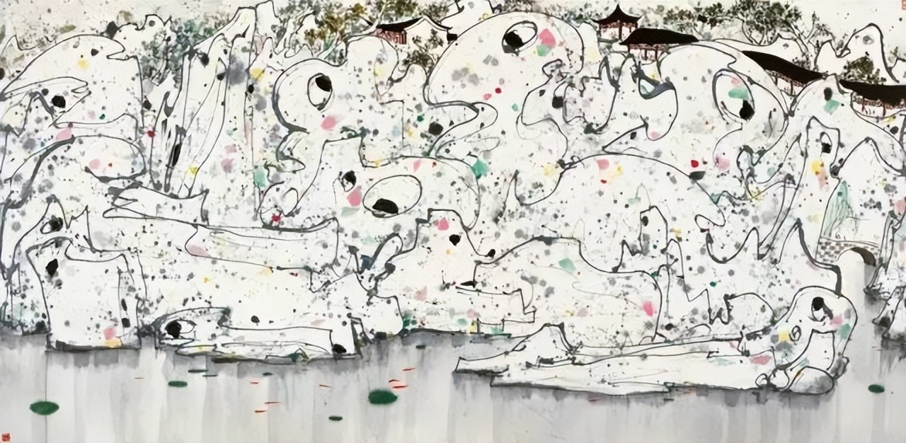 他的《狮子林》,不再是简单的园林描绘,而是以独特的视角捕捉了光影与空间的变幻。假山怪石、亭台楼阁,在浓淡相宜的色彩中,构成了一幅充满诗情画意的江南园林图景。