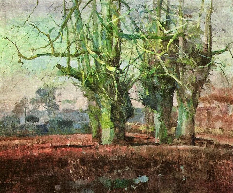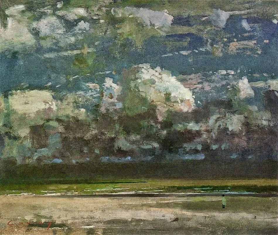 他的作品,带着印象派的浪漫气息,却又有着独特的个人风格。他不拘泥于细节的刻画,而是着重于捕捉整体的氛围和感受。他笔下的风景并非简单的复制自然,而是融入了画家对自然的理解和感悟,以及对光影变幻的敏锐捕捉。