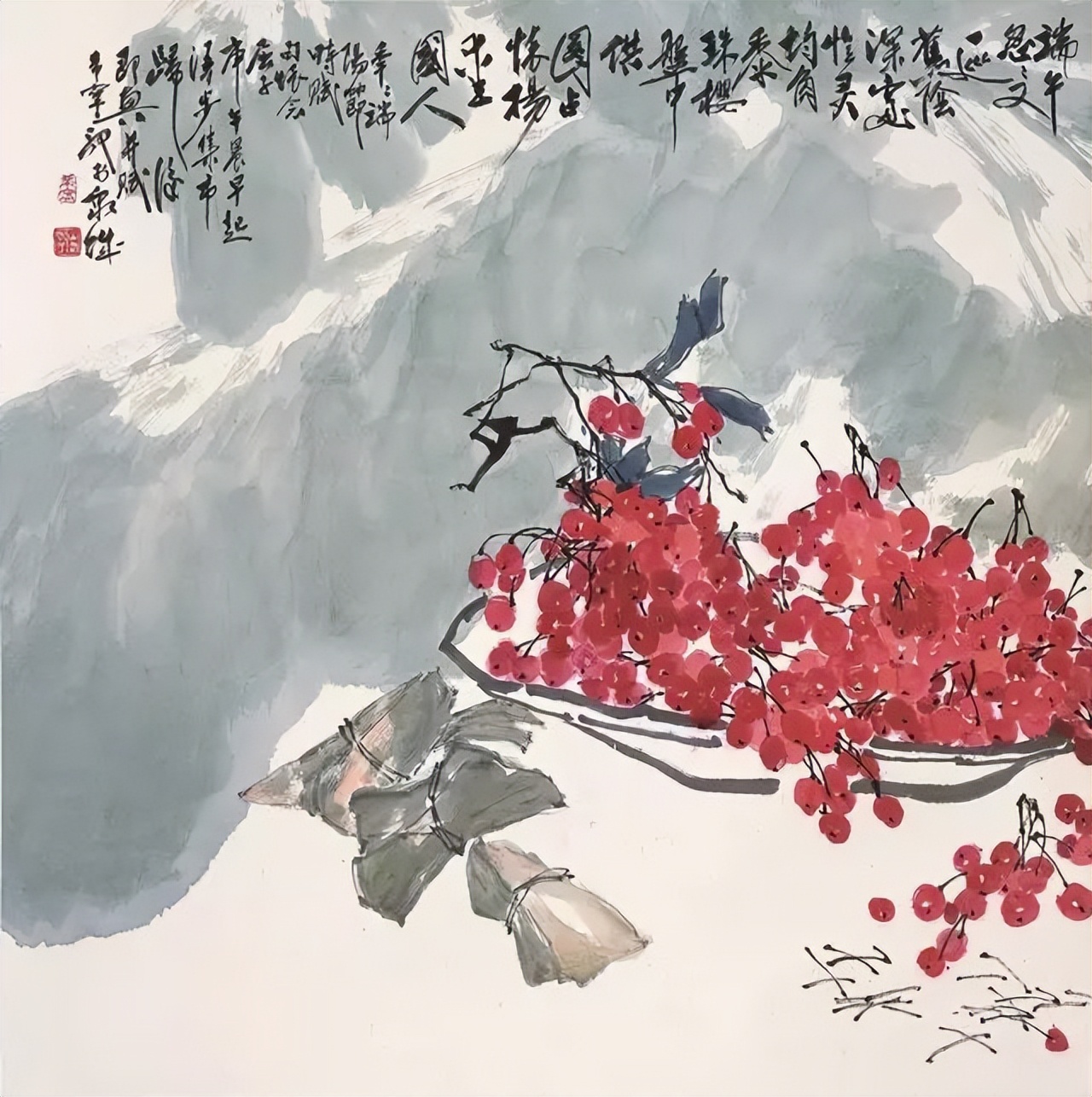 《端午怀屈子》这幅作品,则充满了人文情怀。画面中,艾草青翠,粽叶飘香,让人不禁想起那位伟大的爱国诗人。这不仅仅是一幅静物画,更是一首充满敬意的诗篇。