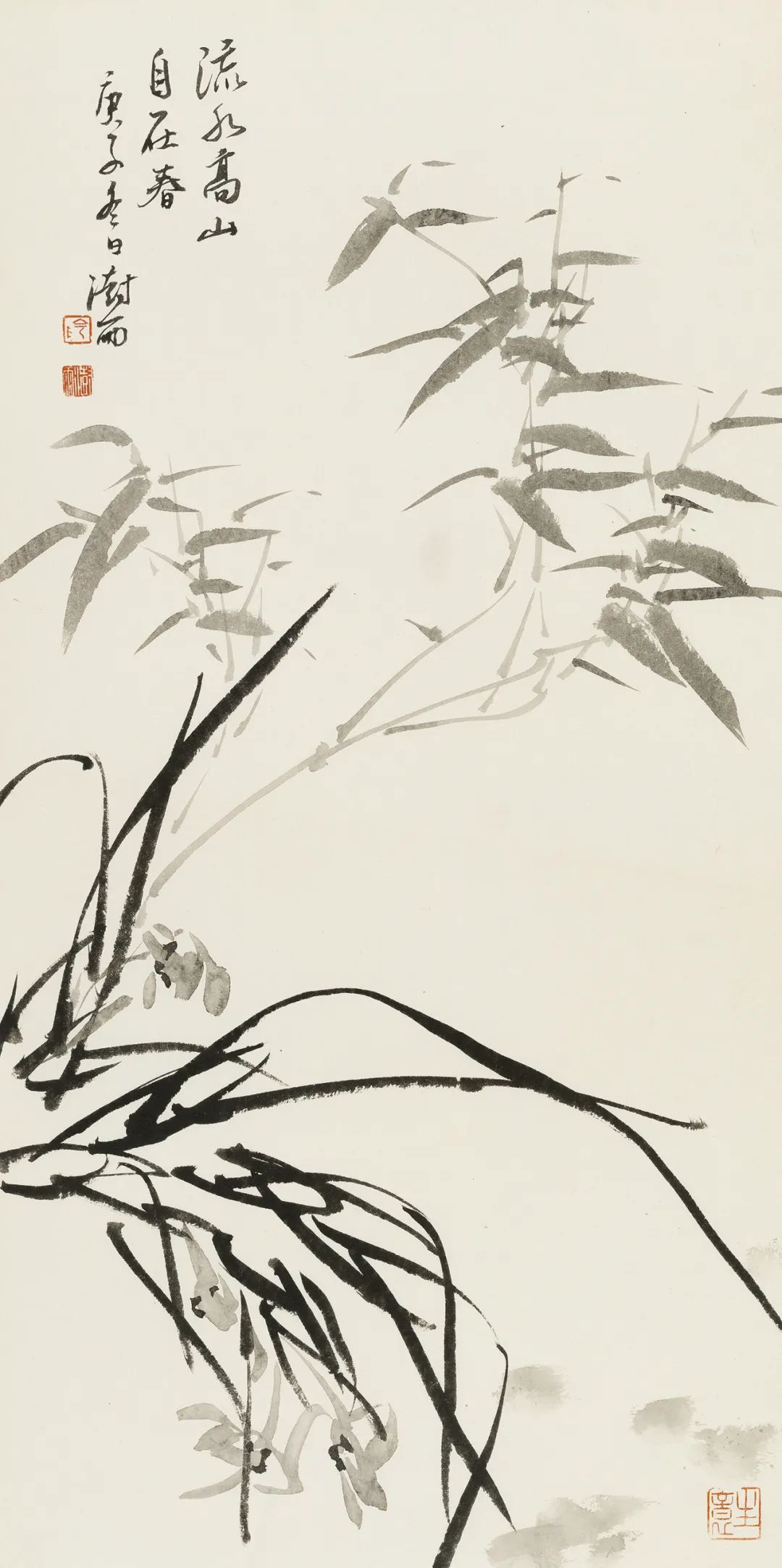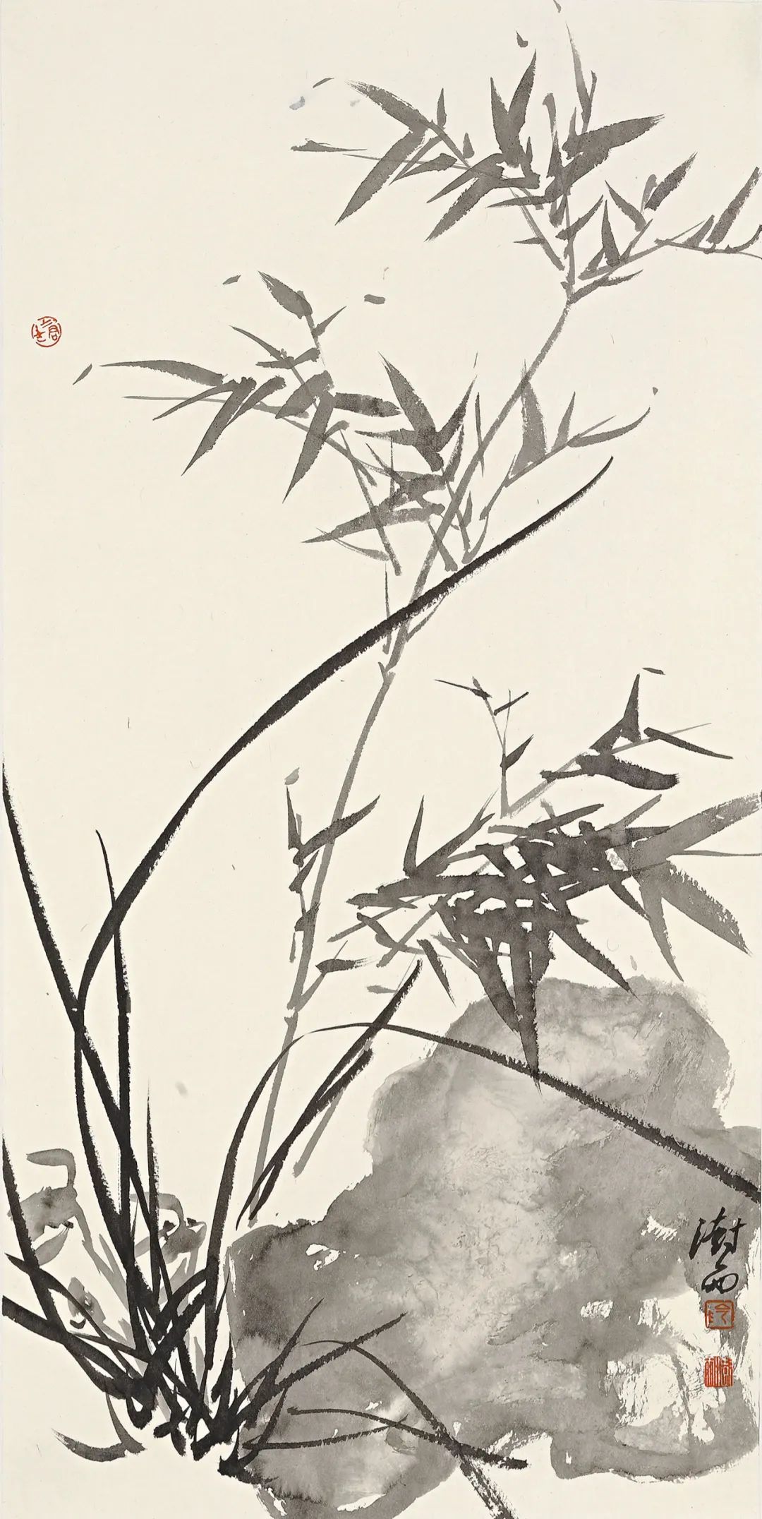 当代画家阴澍雨的作品,更是将梅兰竹菊的意境提升到了一个新的高度。《流水高山自在春》中,兰花在山水中自由生长,展现出一种超凡脱俗的意境。《喜上眉梢》中,梅花枝头喜鹊 perched,寓意吉祥如意,充满喜庆的氛围。《无人自香》中,兰花静静地绽放,散发着幽幽的清香,令人感受到一种宁静致远的美好。《但见清风》和《篱边小景》中,竹子在风中摇曳,展现出一种洒脱自然的姿态,令人心旷神怡。他笔下的水墨,浓淡相宜,将四君子的神韵表现得淋漓尽致,令人不禁感叹其高超的技艺。