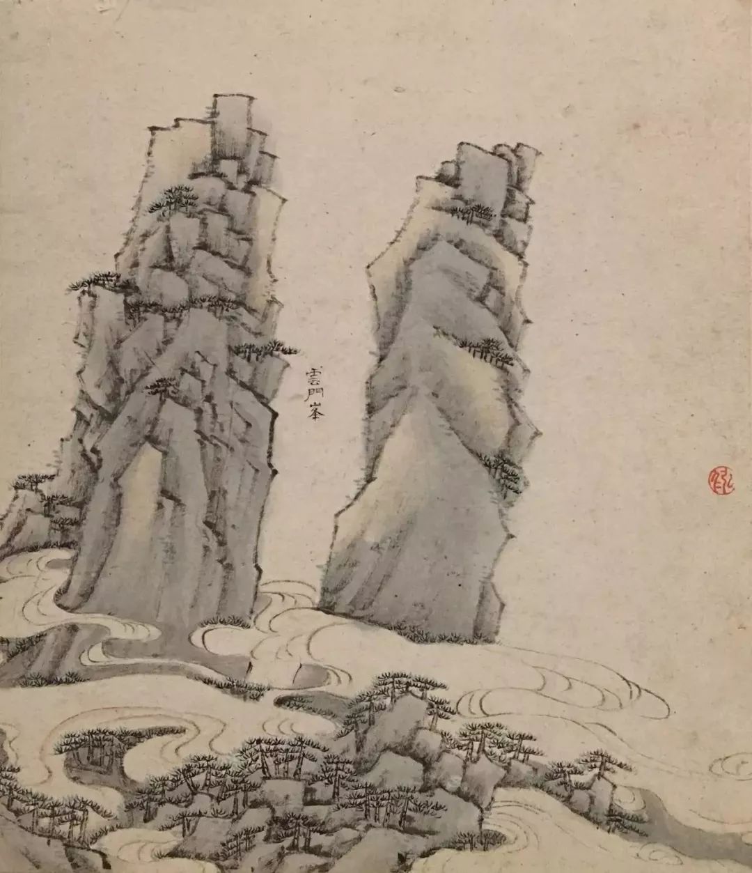 弘仁,这位遁入空门的梅花古衲,将尘世喧嚣抛诸脑后,寻得了黄山这一方心灵的净土。他一生不知多少次攀登黄山,峰峦叠嶂,奇松怪石,云海翻腾,都深深地印刻在他的脑海中。他的《黄山图册》,如同一部私密的旅行日志,六十幅小品,精细地描绘了六十处不同的黄山胜景,每一幅都题写了地点,仿佛引领着我们跟随他的脚步,一同探寻这山间秘境。笔墨清淡虚灵,却又蕴藉多变,不同于倪瓒的荒寒萧瑟,弘仁的黄山,更多了几分清新脱俗的意趣,仿佛山间清风拂面,令人心旷神怡。
