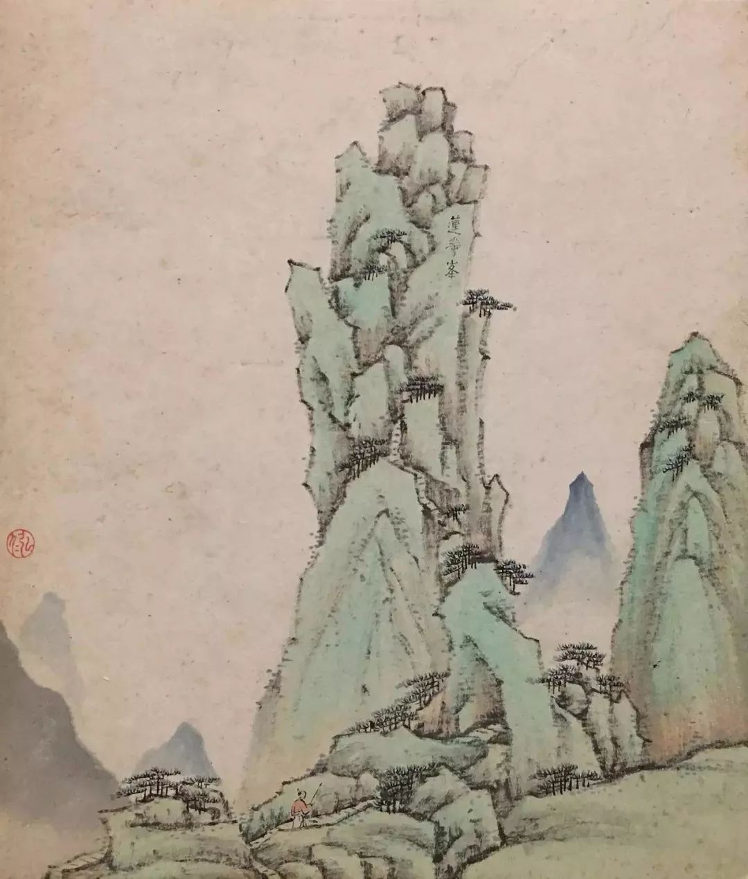 梅清,这位崇尚王蒙的画僧,以独特的卷云皴,将黄山的云雾变幻描绘得如梦似幻。他的《黄山十九景》,创作于他创作生涯的巅峰时期,画面中,云雾缭绕,山峰隐约可见,宛如仙境一般。画中人物或独坐鸣弦,或对弈遨游,与山林间的氤氲仙气相互映衬,营造出一种超凡脱俗的意境,令人心驰神往。不同于弘仁的清淡灵秀,也不同于石涛的秀润含蓄,梅清的黄山,独具一份飘逸逍遥,笔墨清奇,仿佛带着一股清新的芬芳,令人感受到黄山的空灵与静谧。