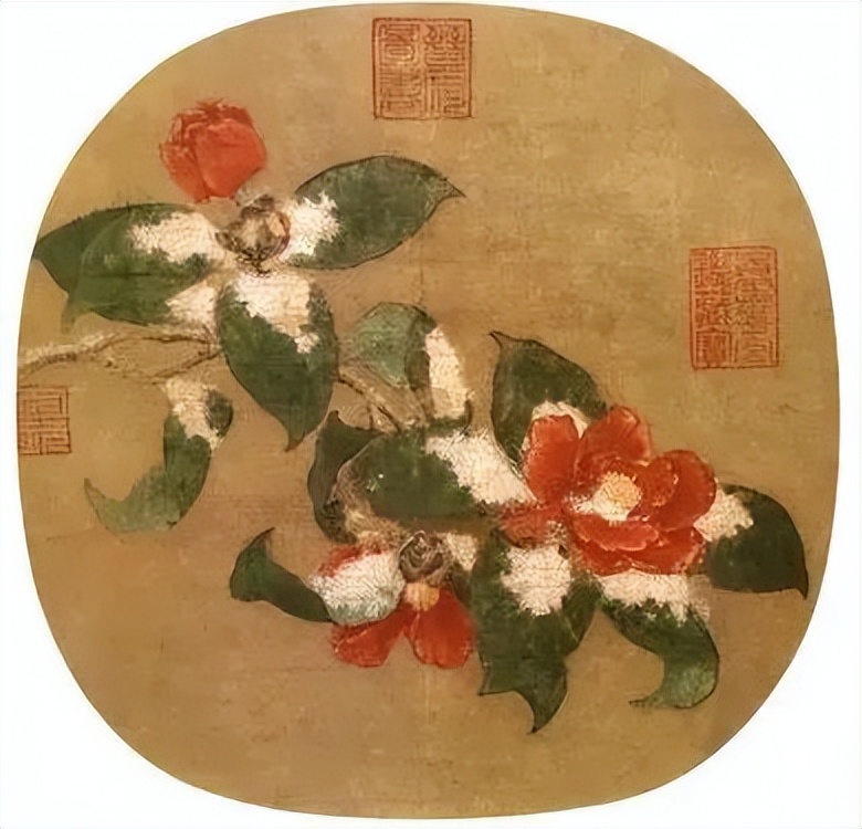 林椿的《山茶图》,又是另一番景象。山茶花色艳丽,花瓣饱满,枝干遒劲有力,画家以工笔细描,将山茶的富贵之气展现得淋漓尽致。即便只有一枝,也足以让人感受到生命的蓬勃与热烈。