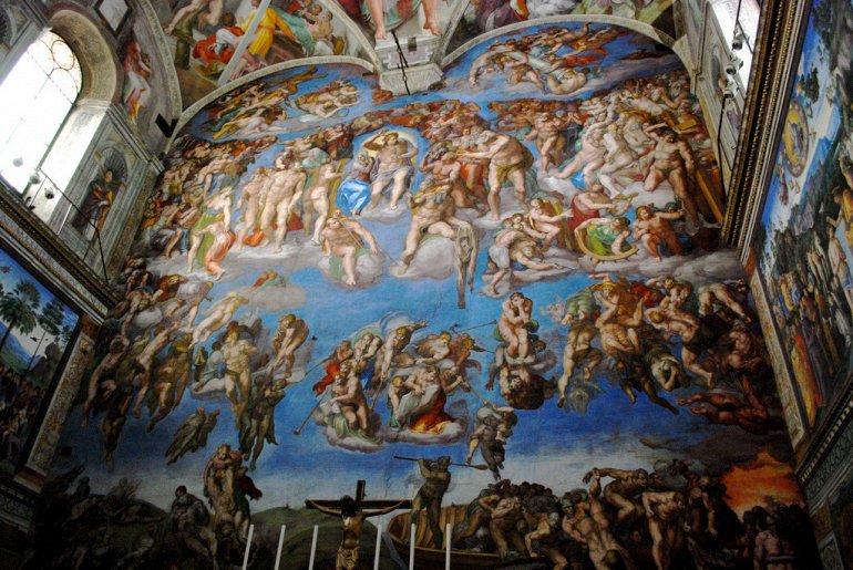 西斯廷教堂的《最后的审判》,是米开朗基罗晚年的杰作。这幅壁画描绘了世界末日审判的场景,场面宏大,人物众多,充满了宗教的庄严和神圣。