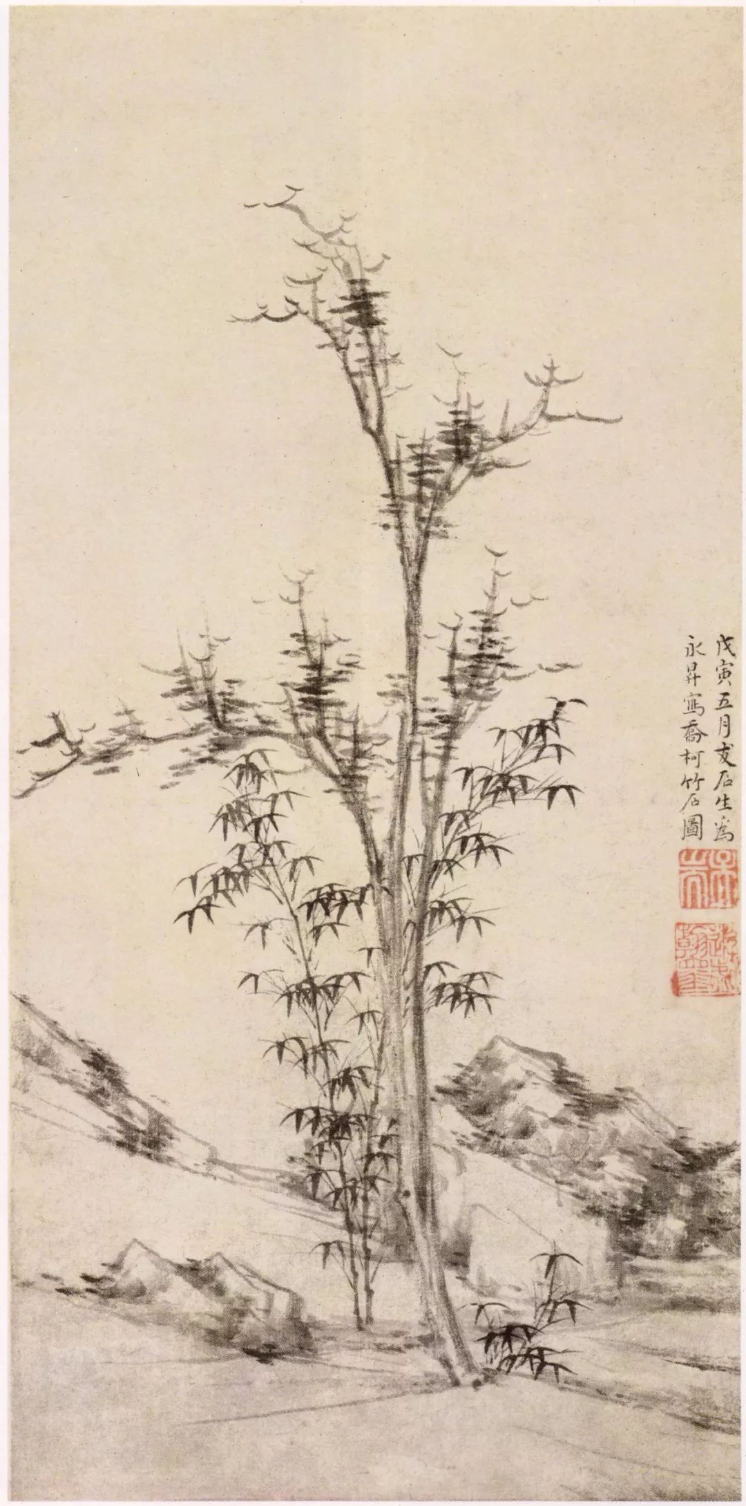 王绂的笔下,竹,不再仅仅是竹,而是人格的象征,是文人风骨的体现。弗利尔美术馆藏的那幅竹图,墨色淋漓,竹叶摇曳,仿佛能听到风穿过竹林的沙沙声。故宫博物院的《乔柯竹石图》,则更显清幽淡雅,竹石相依,展现出一种和谐的自然之美。《山亭文会图》中,文人雅士们在山亭间吟诗作对,琴声悠扬,令人神往,仿佛穿越时空,与他们一同感受那份高雅的情趣。