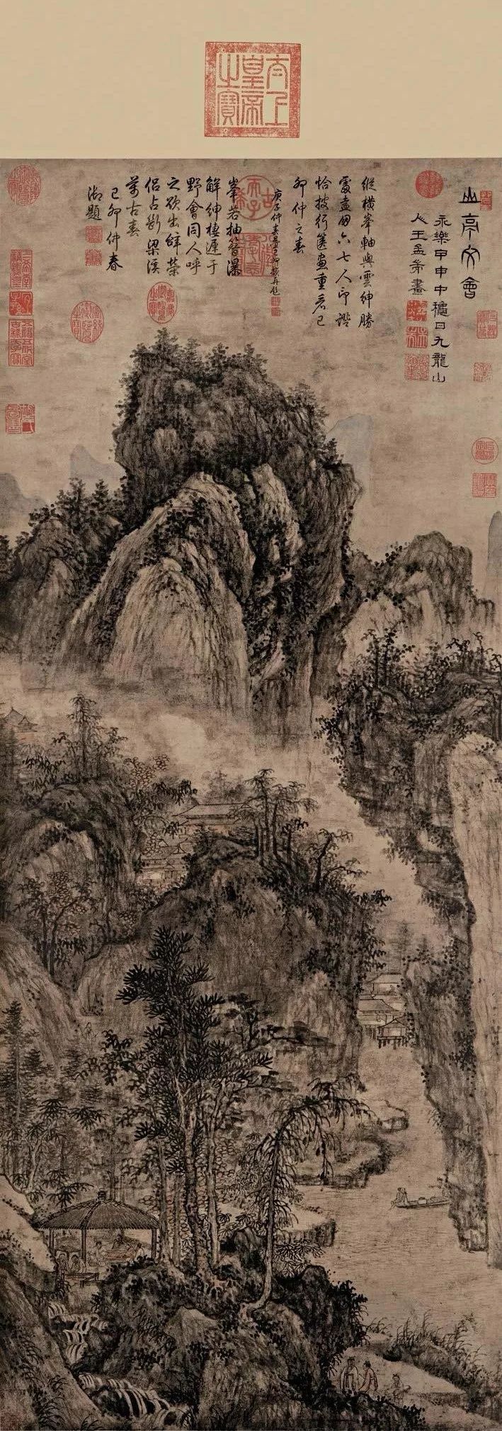 王世昌的山水画,气势磅礴,意境深远。《俯瞰激流图》中,激流奔腾,山峰巍峨,令人感受到大自然的雄伟壮丽。《高士访隐图》则描绘了隐士高人隐居山林的场景,表达了对远离尘嚣、追求宁静生活的向往。