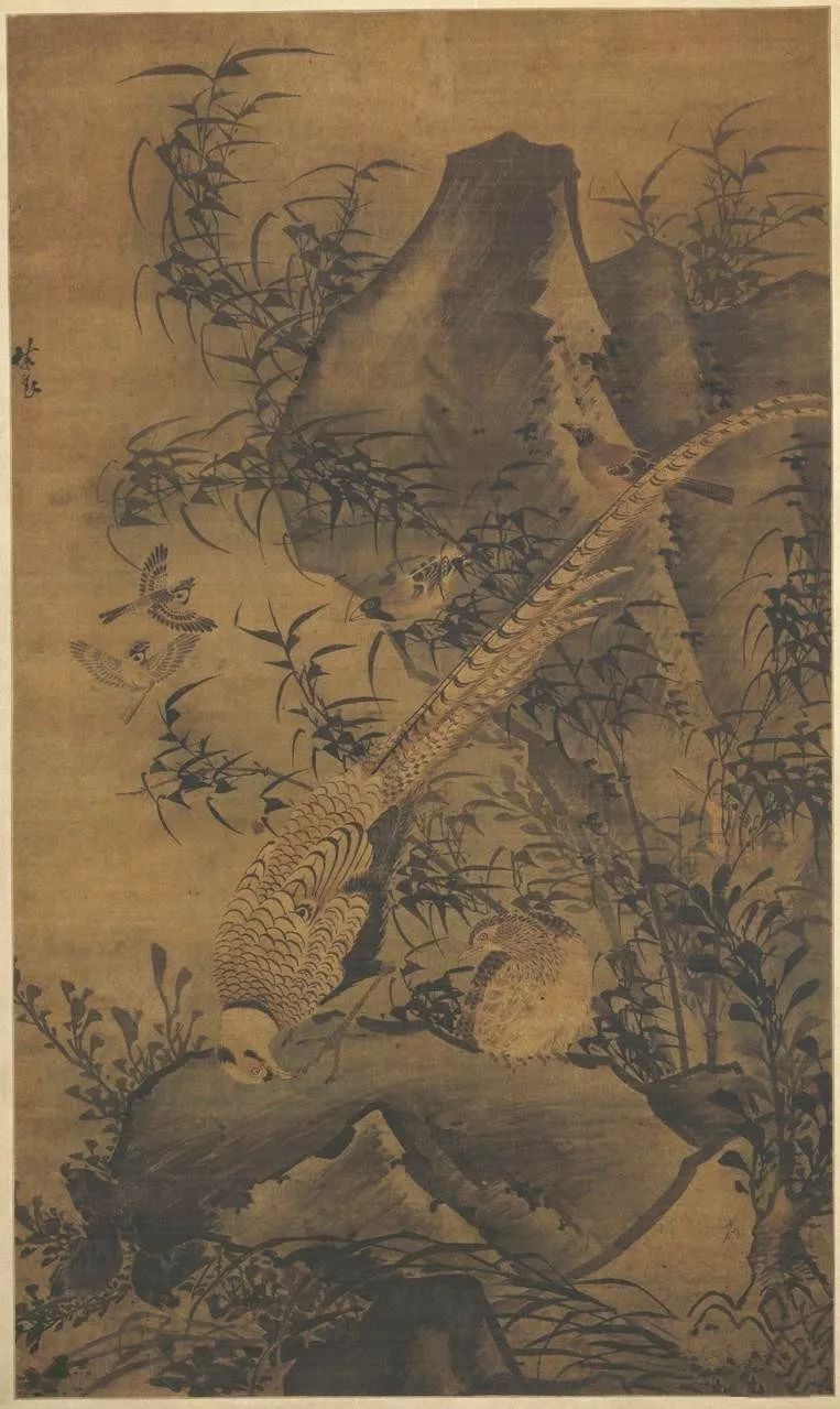 林良的花鸟画,充满了野逸之趣。他笔下的鹰、雁、鹤、鹭,或翱翔于天空,或栖息于枝头,都充满了生命力。《雉鸡图轴》中,雉鸡羽毛的色彩斑斓,栩栩如生,令人不禁赞叹大自然的鬼斧神工。《竹禽图轴》则以简洁的笔墨,描绘出竹林和鸟儿和谐共生的景象,充满禅意。
