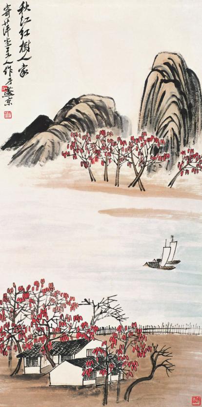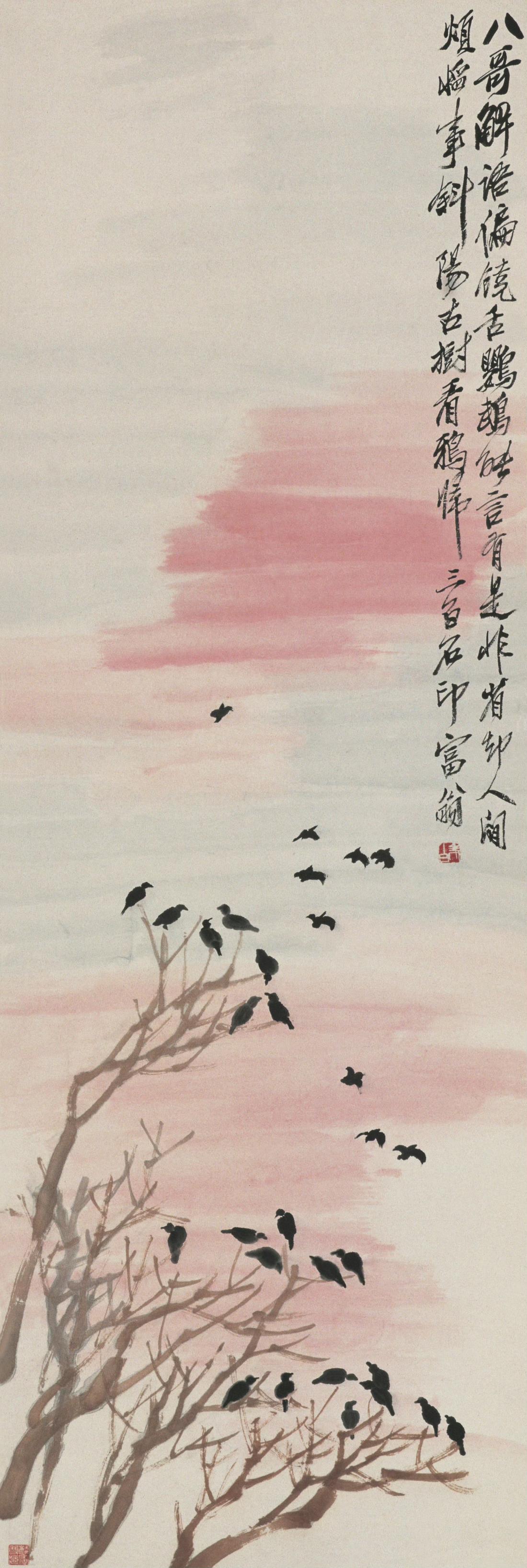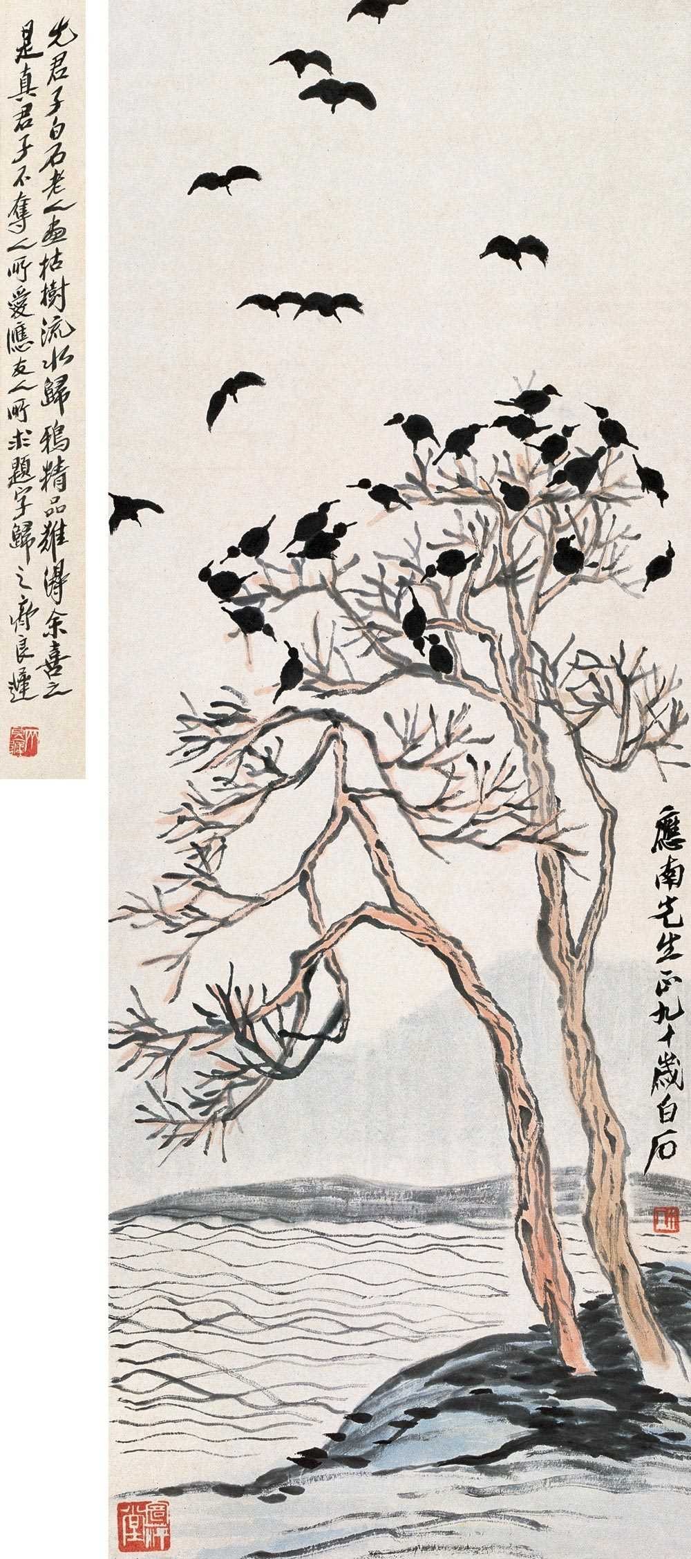 白石老人的画,色彩浓烈却又不失和谐。他喜欢用大片的红色,像燃烧的火焰,又像孩童的笑脸,热烈而纯真。而这红色,又常常与墨色的枝叶、黑色的石头相映衬,形成强烈的视觉冲击,却又意外地和谐,仿佛生命的律动与自然的沉静完美地融合在一起。