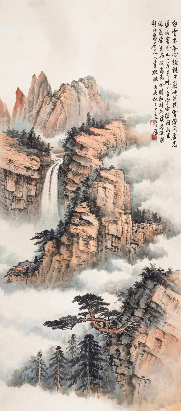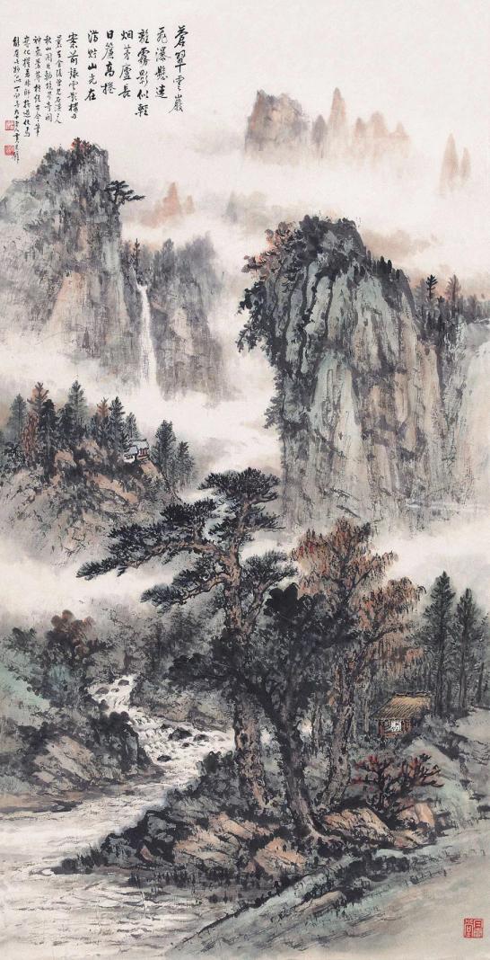 我尤为钟爱他的山水,那些云烟缭绕的峰峦,那些飞瀑流泉的峡谷,都仿佛带着一股仙气,引人入胜。在他的笔下,山不再是冷冰冰的岩石,而是有了生命,有了呼吸。它们或巍峨耸立,直插云霄,展现着大自然的雄浑壮阔;或连绵起伏,宛如一条沉睡的巨龙,诉说着岁月的沧桑变迁。