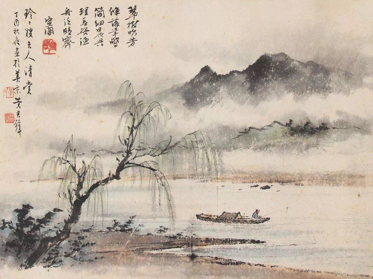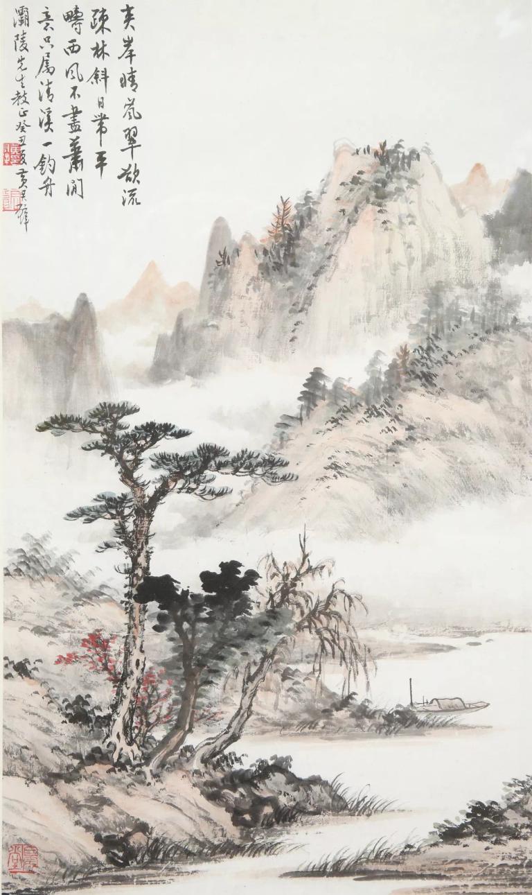 他的画作中,色彩的运用也极为精妙。他善于运用淡雅的色彩,营造出一种空灵、清新的意境。他笔下的绿色,并非单一的翠绿,而是层层叠叠,深浅不一,仿佛是大自然调和出的最美的颜色。而他笔下的蓝色,也并非单一的湛蓝,而是融合了天空的蔚蓝、湖水的碧蓝、云雾的淡蓝,共同构成了一幅色彩斑斓的画卷。