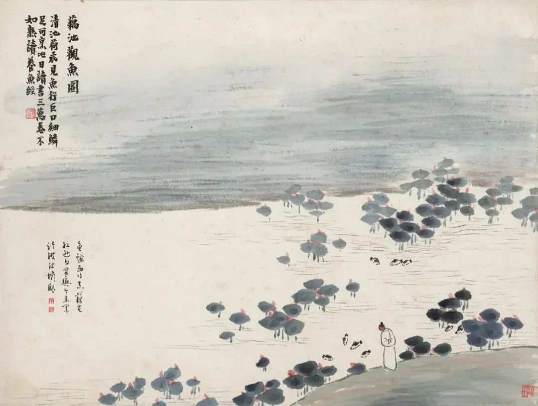 《藕池观鱼图》中,观鱼并非只是为了口腹之欲,而是从中体味生活的乐趣。那“清池河底羡鱼行,巨口细鳞足可烹。此日读书三万卷,不如熟读养鱼经”的题诗,更是充满了生活的哲理和幽默感。