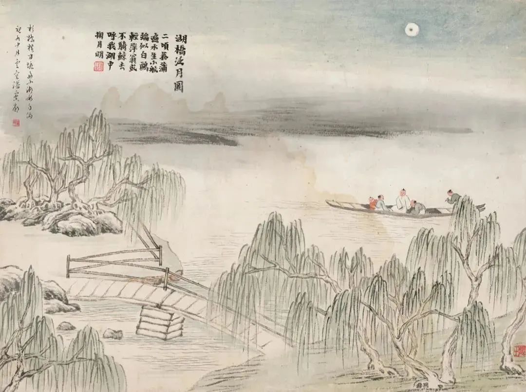 《湖桥泛月图》中,泛舟湖上,掬水月明,这是何等的浪漫和诗意!白石老人的画作,不仅展现了景色的美,更展现了心境的美。