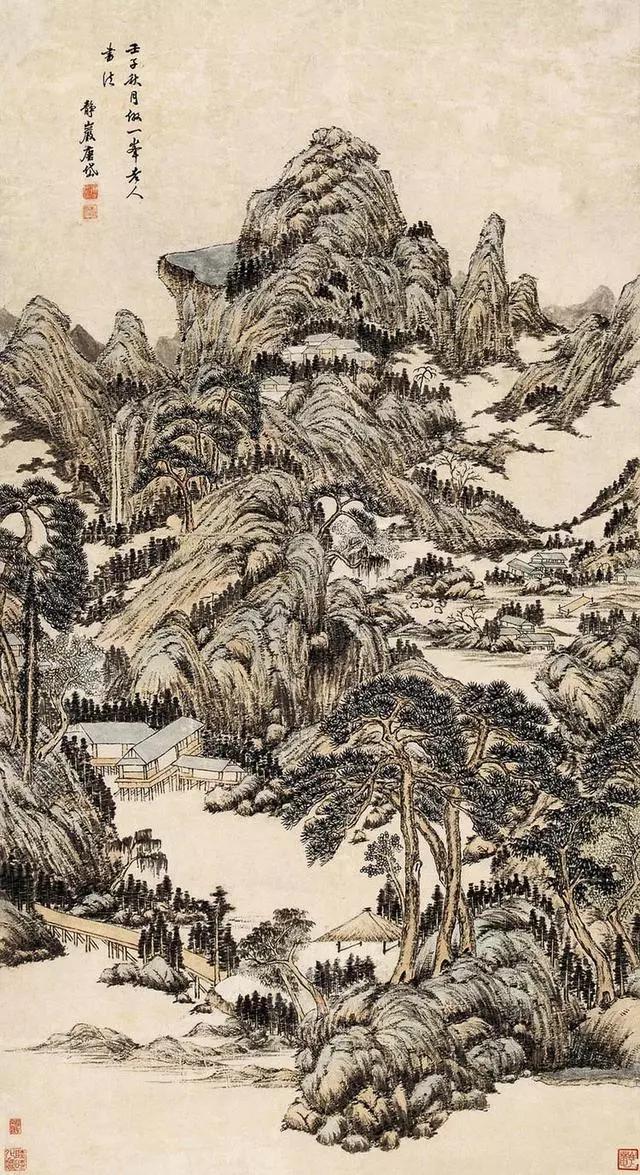 清王朝的宫廷画师中,唐岱的名字如同他的山水一般,静谧而深远。这位满洲正蓝旗的画师,承袭祖爵,以画祗候内廷,一生浸润于丹青翰墨之间,以笔墨勾勒出盛世王朝的繁华与宁静。他早年师从焦秉贞,后又拜入山水大家王原祁门下,与王敬铭、张宗苍并称为王原祁得意弟子,名动京师。康熙帝对他的画作更是赞赏有加,常召他入宫作画,并赐予“画状元”的美誉。这不仅是对他艺术造诣的肯定,更是对他为宫廷艺术所作贡献的嘉奖。