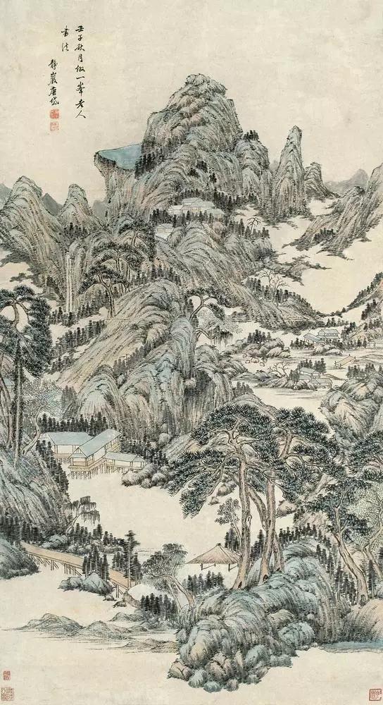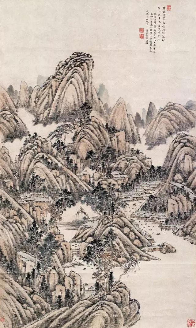 唐岱的山水,传承了董源、巨然、黄公望、王蒙等元四家的衣钵,又融入了王原祁的沉稳厚重。他的笔触,如同山间清泉,时而奔涌,时而涓涓细流,在绢素上勾勒出峰峦叠嶂、云雾缭绕的景象。他的画作,布局深稳,意境悠远,仿佛带领观者进入一个远离尘嚣的世外桃源。
