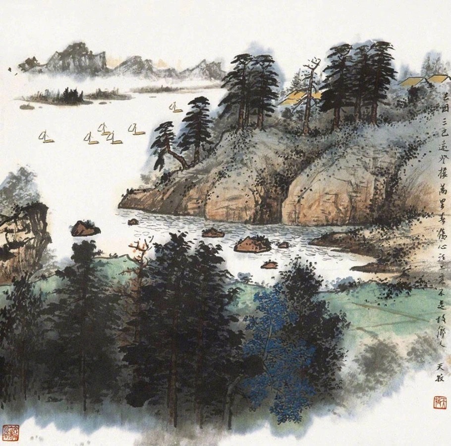 启功如此评价孙天牧的山水画:笔力坚卓,设色大方