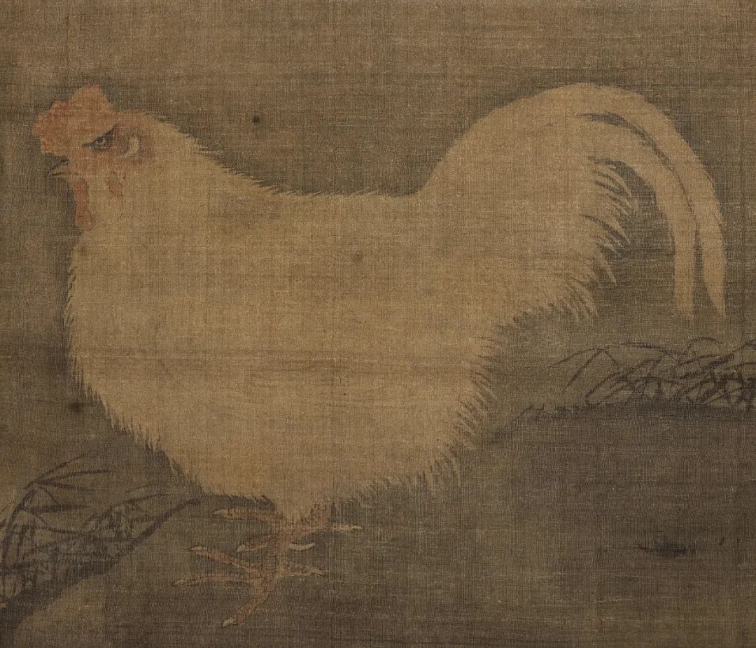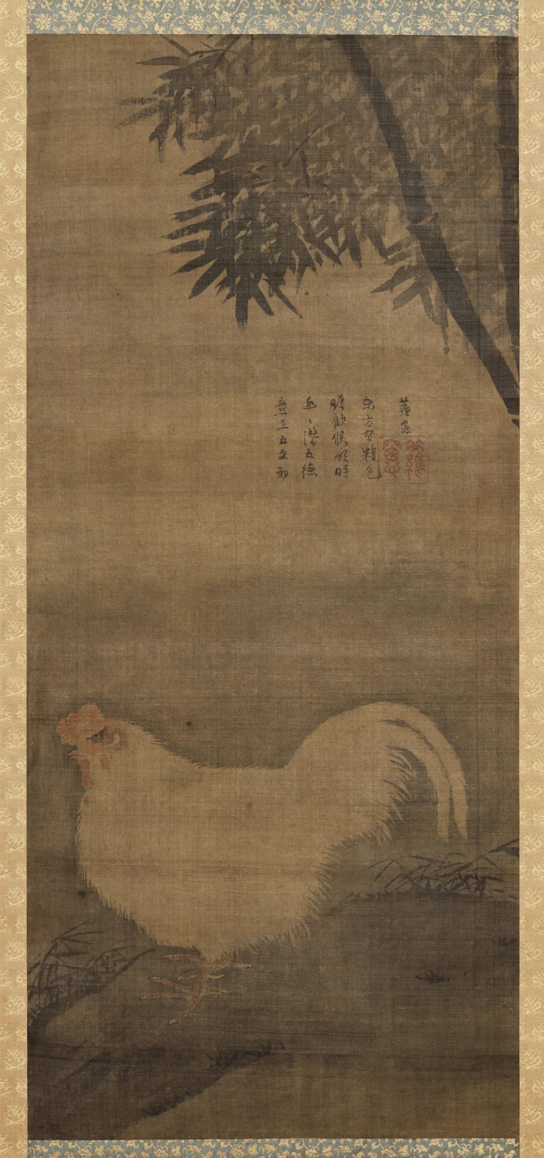 晨曦未至,一幅南宋萝窗的《竹鸡图》便将我带入静谧的禅意世界。绢本上,雪白的雄鸡凝神伫立,仿佛一位在五更时分顿悟的禅僧。它通体雪白,在幽暗的背景中格外醒目,工笔细描的羽毛,纤毫毕现,与身后写意挥洒的墨竹相映成趣。这不禁让人想起法常的《鹤图》,相似的构图和笔法,传递着一种超脱尘世的宁静。这只鸡,它并非只是简单的禽鸟,而是承载着“文、武、勇、仁、信”五德的象征。它目光炯炯,不怒自威,仿佛蕴藏着无尽的智慧和力量。萝窗的题诗更是点睛之笔:“东方有精色,瞻顾候明时。幽幽潜五德,意在五更初。”短短几句,便将画作的意境提升到了一个新的高度,让人在欣赏画作的同时,也感受到了一种精神上的升华。