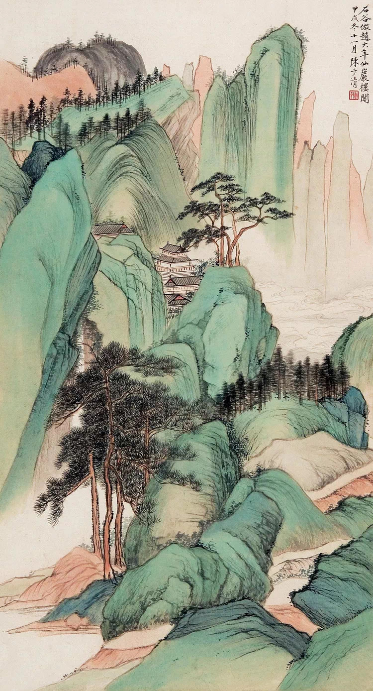 他笔下的色彩,并非简单的堆砌,而是经过精心的调配,营造出一种和谐而富有诗意的氛围。有时浓墨重彩,描绘出山川的雄伟壮丽;有时淡墨轻岚,勾勒出江南的烟雨朦胧。他的色彩,如同音乐的旋律,时而高亢激昂,时而低沉婉转,引领着观者进入一个充满意境的世界。