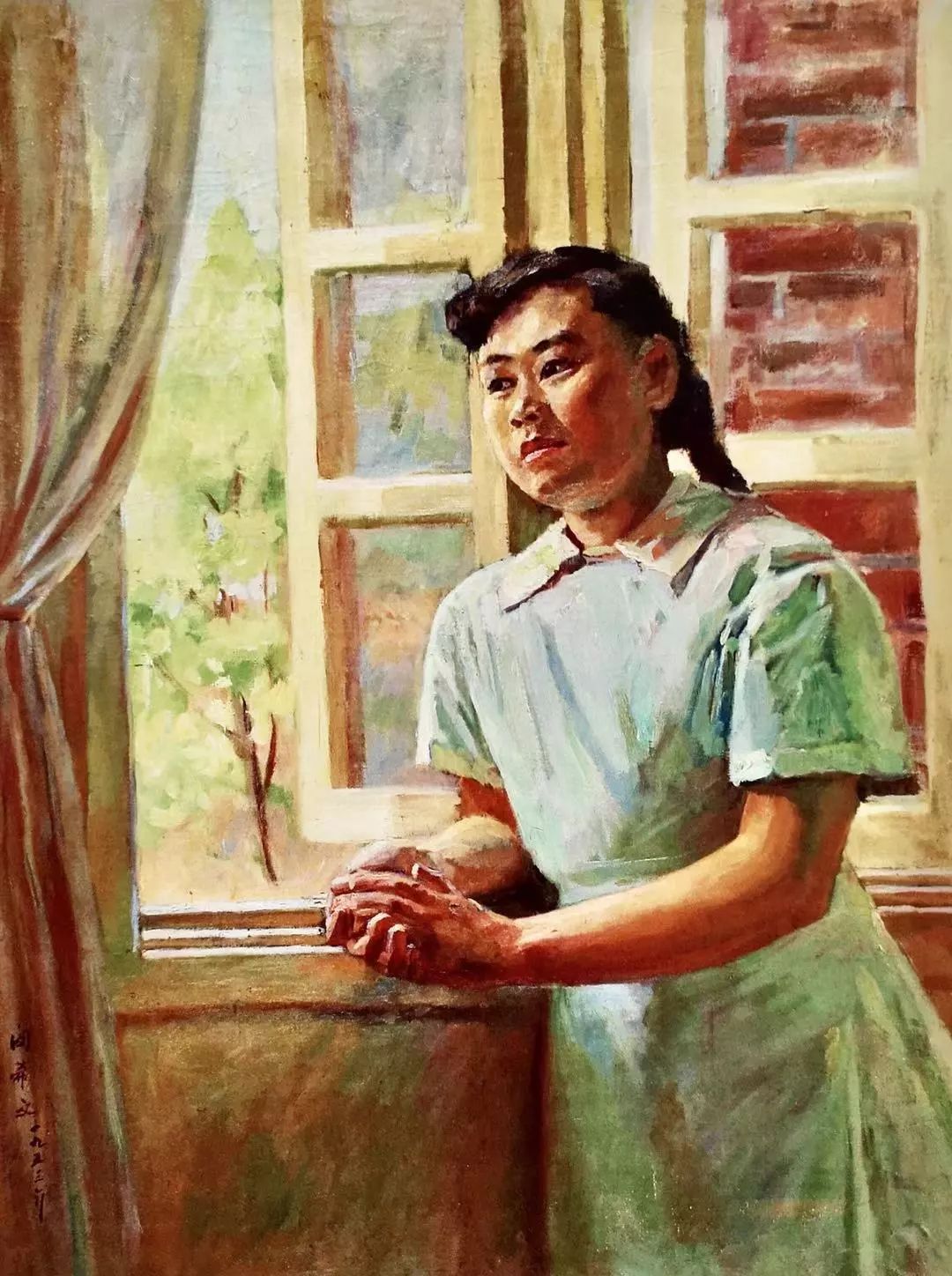 翻阅着闵希文先生的画册,仿佛步入了一个充满诗意的世界。早期的《窗前少女》,明媚的阳光透过窗棂洒在少女身上,画面洋溢着青春的气息。少女的眼神清澈而明亮,仿佛对未来充满了憧憬。这幅画的色彩明快,笔触细腻,将少女的纯真与美好展现得淋漓尽致。《少先队辅导员》则展现了新中国建设时期人们的精神风貌,辅导员的目光坚定而温柔,充满着对孩子们的关爱。