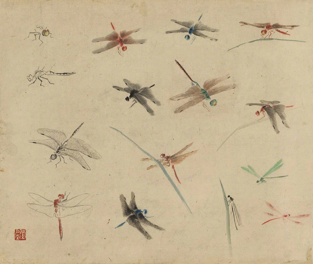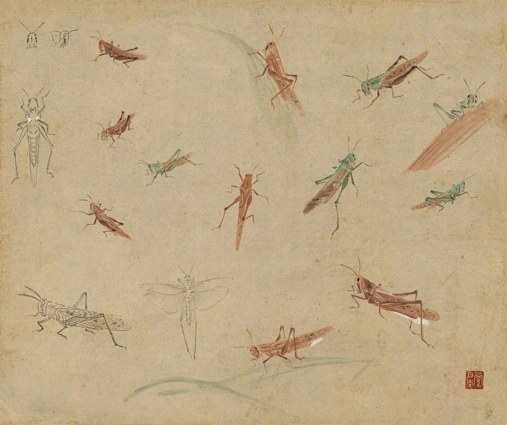 感受王雪涛先生笔下的花鸟世界。那里,草虫并非只是点缀,它们是跳动的音符,是流动的诗行,是生命力的最好诠释。一只小小的蝉,墨色淋漓,仿佛正鼓动着薄翅,发出嘹亮的鸣叫,为夏日奏响序曲。而那生性敏捷的螳螂,则以其独特的姿态,勾勒出优美的线条,为画面增添了一丝动感。