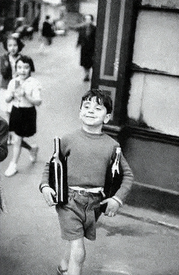 布列松的镜头,则像一位敏锐的诗人,捕捉着人间百态。在《苦难的眼睛》里,男孩愁容满面的脸庞,映照出那个时代中国人民的艰辛,无声地诉说着历史的重量。而《布列松习作》中,男孩怀抱酒瓶,踌躇满志的步伐,仿佛一首轻快的进行曲,充满了生活的希望和童年的活力。这日常的瞬间,在布列松的镜头下,升华为隽永的诗篇。